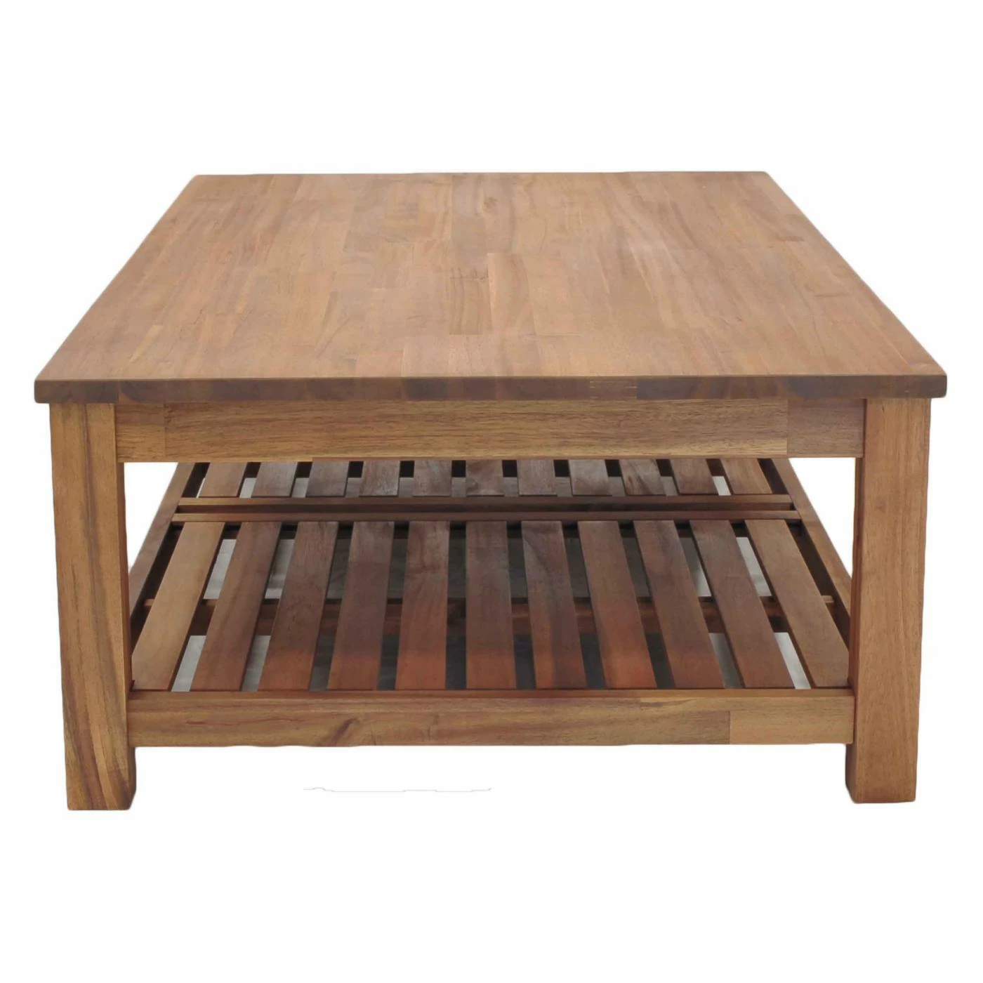 The New Pacific Direct Inc. Tiburon Coffee Table is an unadorned beauty with impressive storage capability. This coffee table boasts solid acacia wood craftsmanship along with a natural finish that highlights the exquisite woodgrain detail. Store items on the roomy bottom shelf.