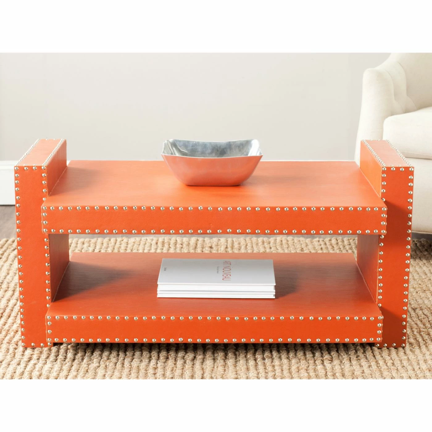 Highly versatile, the Safavieh Garson Accent Table is a piece you can display beside your bed, your sofa, or along a wall in a hallway. Wherever you display it, the texture of its bi-cast vegan leather upholstery and gleaming nail head trim is sure to spice up your dΓ©cor. The engineered wood table includes a sunken top and a secondary lower storage shelf and comes in your choice of available colors.