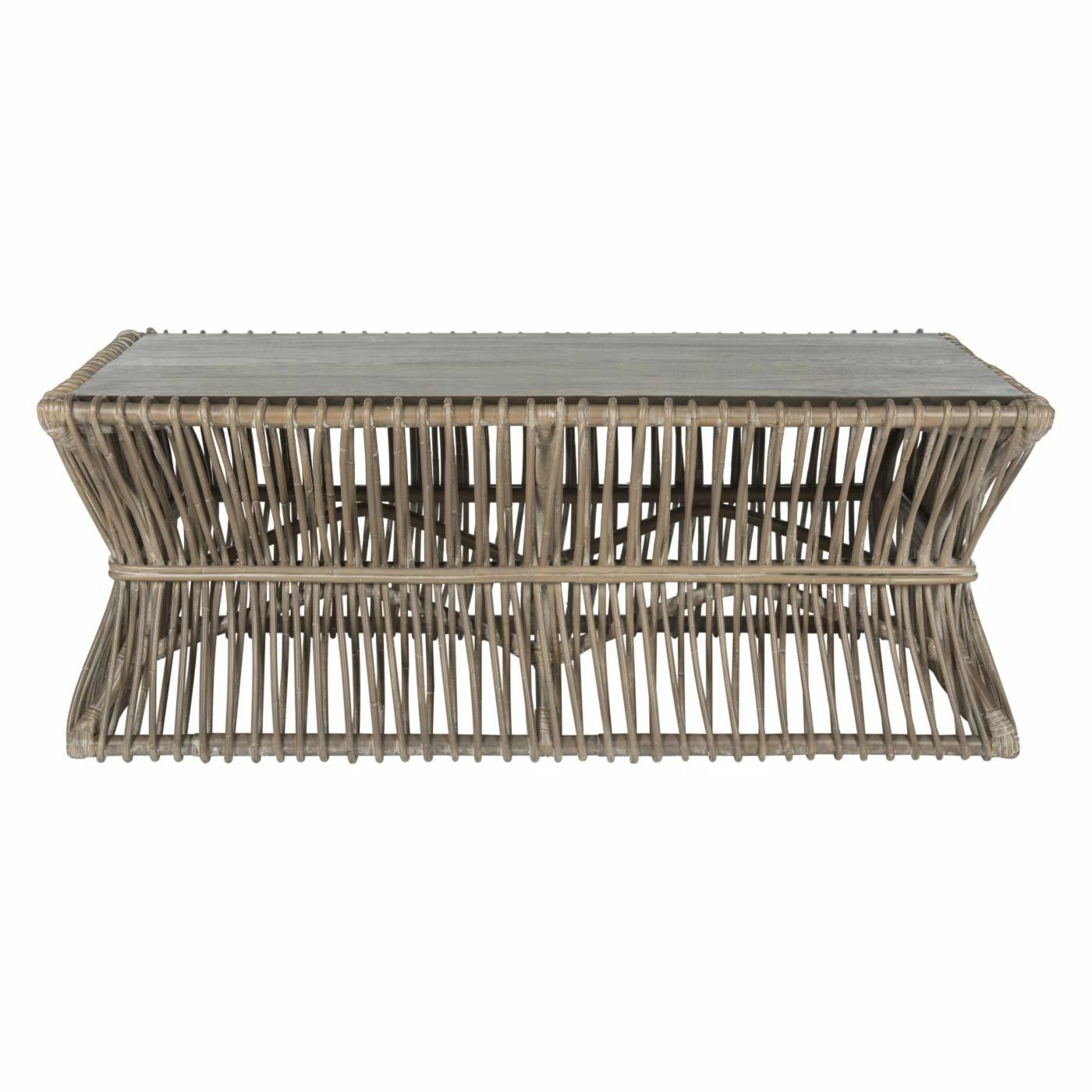When creating the Safavieh Gensho Coffee Table, the designers at Safavieh looked at hand-woven baskets displayed in the Japanese Gallery of the Art Institute of Chicago. You can see the Asian influence in the careful arrangement of the rattan poles that make up the tapered base of the table. The mango wood block provides a sturdy top surface and contrasts with the texture of the poles. Finished in light gray, the table is perfect for tropical, coastal, farmhouse, shabby chic, and contemporary living rooms.