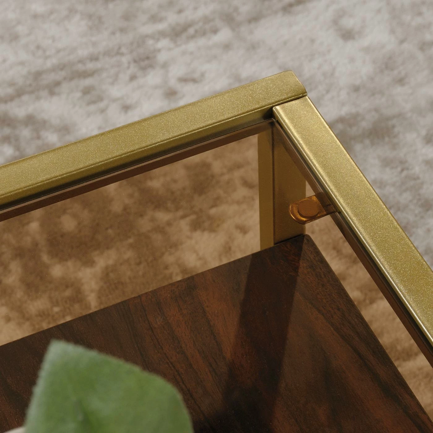 - Gold metal and glass construction
