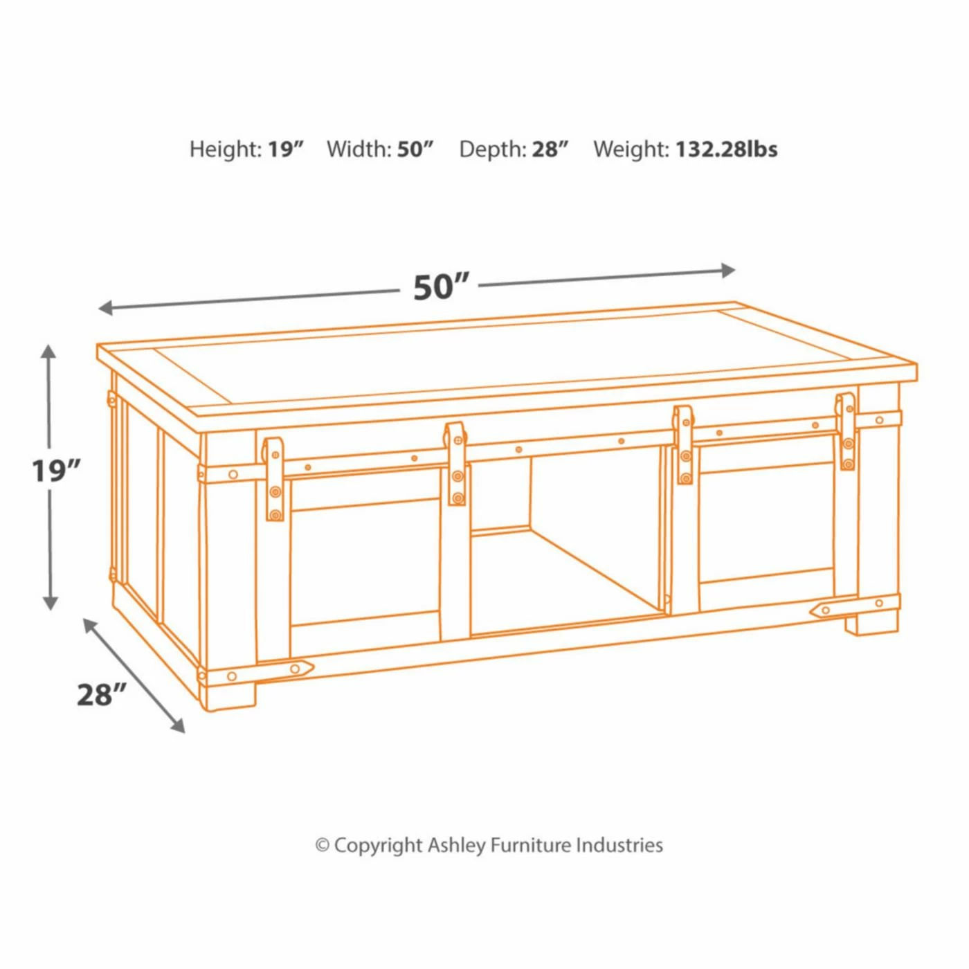 - Dimensions: 50W x 28D x 19H in.