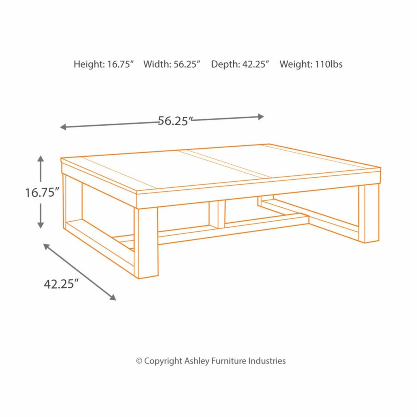 Clean lines and bold, oversize construction make the Signature Design by Ashley Watson Coffee Table a strong addition to any decor. A deep finish and sharp-edged design give this table a distinct modern sophistication. Beautiful ash veneers will stand the test of time with grace. Pull together any room with this classically elegant cocktail table.