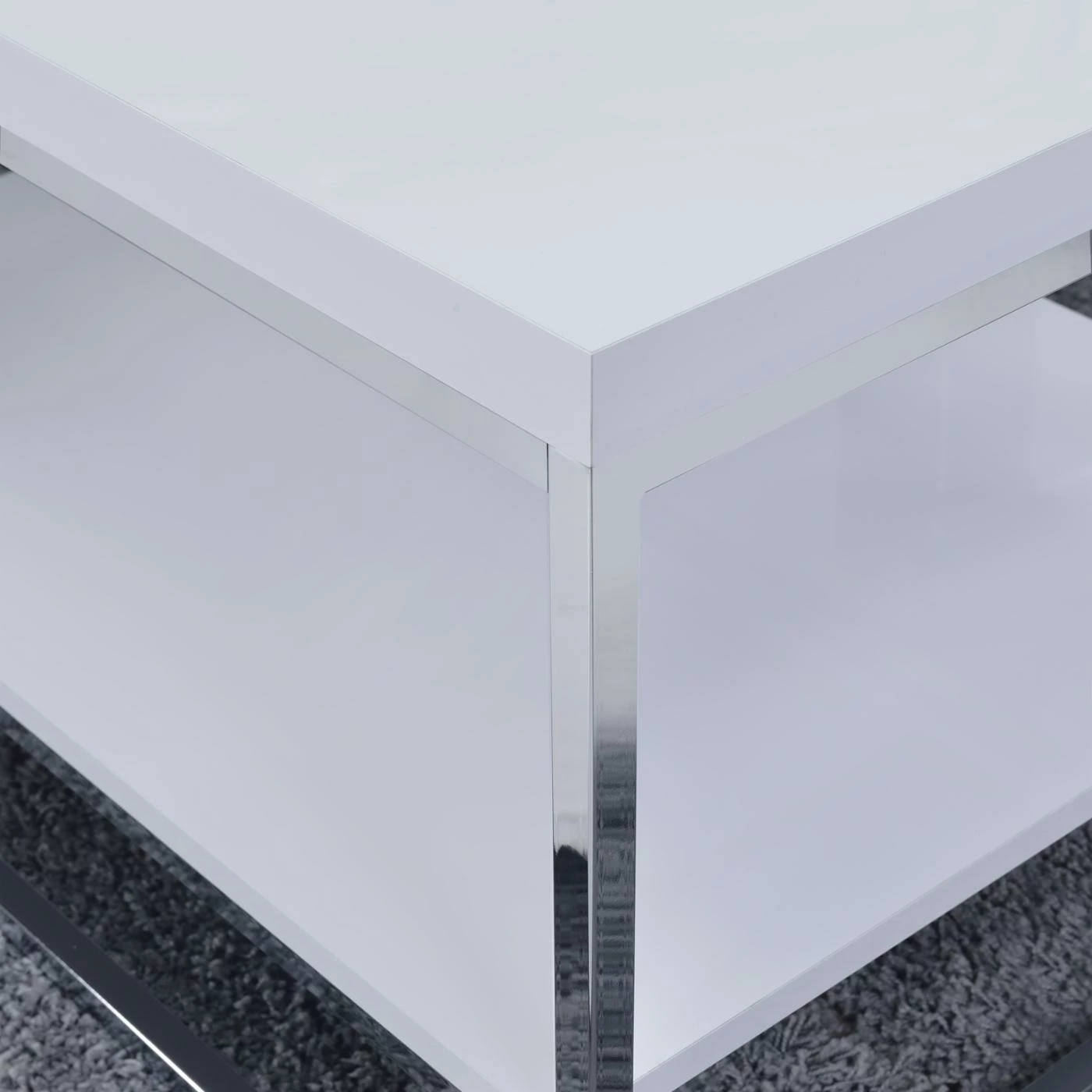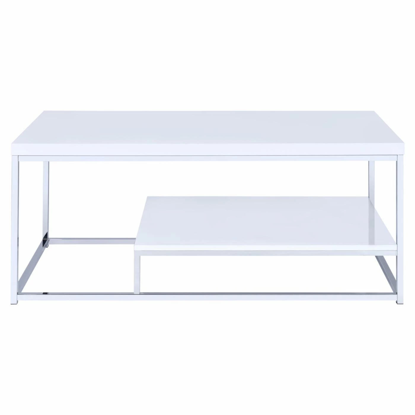 - Acrylic tabletop looks like real wood and is supported by a chrome frame