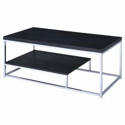 The contemporary design of the Steve Silver Co. Lucia Rectangle Cocktail Table is sure to impress guests to your space. Enjoy the elegance of a rich brown finish paired with the metallic look of the minimalist frame. The durable top resists everyday damage such as heat, moisture, and scratches. Store coffee table books, mugs, and mementos below the tabletop on the convenient shelf.