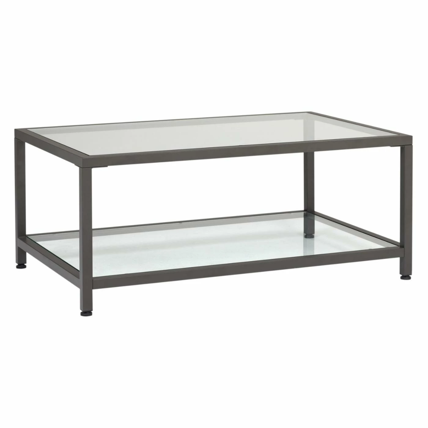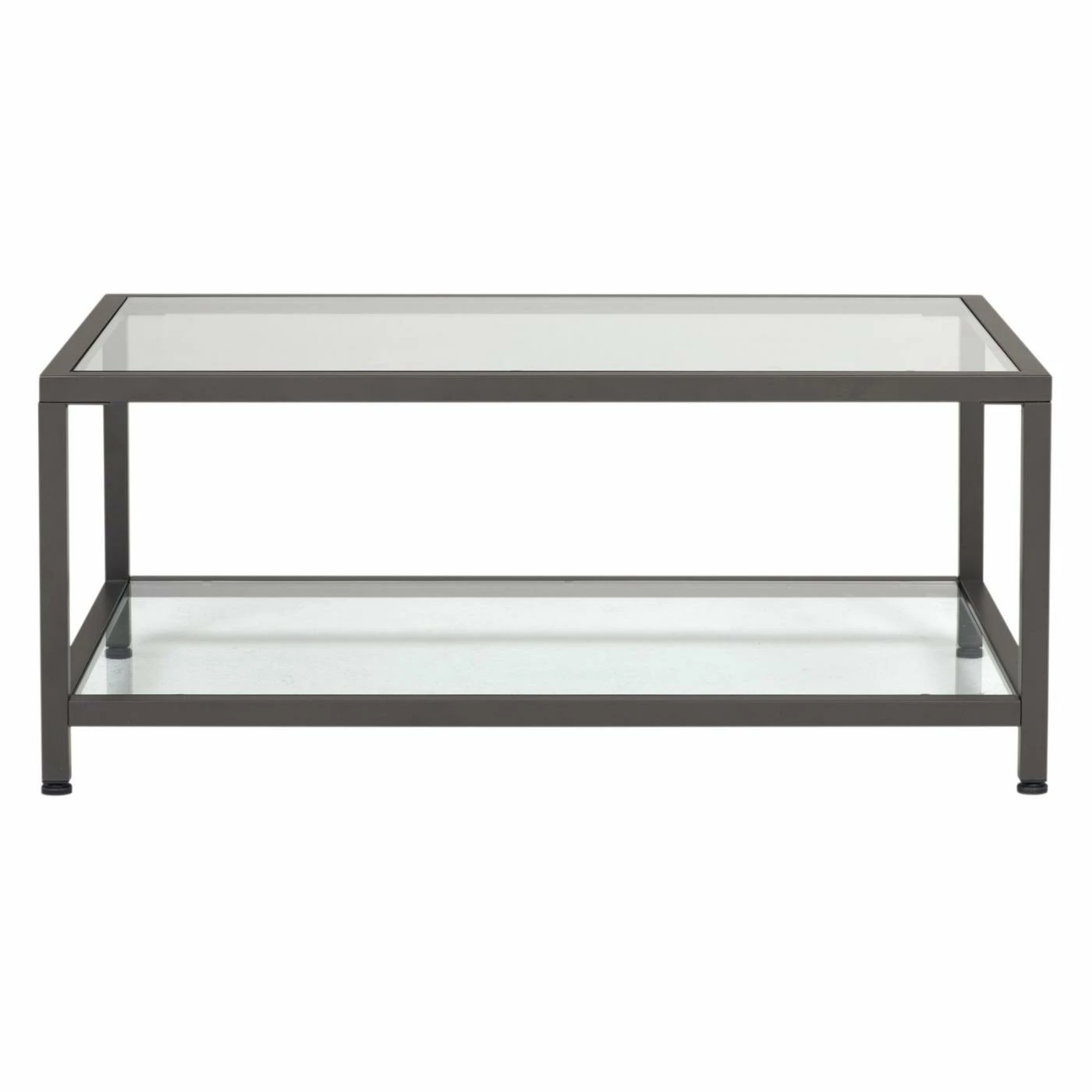 Elevate your living room aesthetic in a slick, contemporary aesthetic with the Studio Designs Camber 36 Modern Rectangular Coffee Table. This coffee table features dual levels of transparent tempered glass shelving perfect for holding your magazines, drinks, or other home accessories. A durable steel frame in a contemporary silver-pewter finish is easy to match to your existing home décor. Use the included levelers for additional stability on any flooring surface.