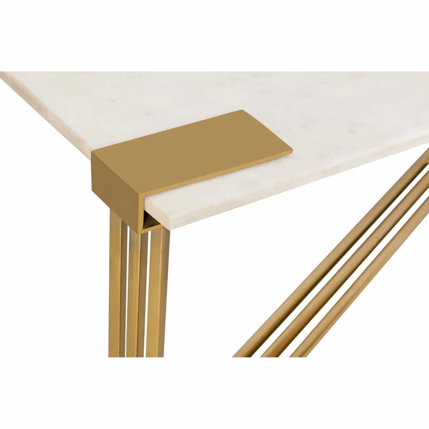 Contemporary and modern, the TOV Furniture Daneb Marble Cocktail Table boasts a sophisticated gold frame and genuine marble top. Its unique angular base will be a focal point in your living space and its white and gold color tones will blend beautifully with any decor.
