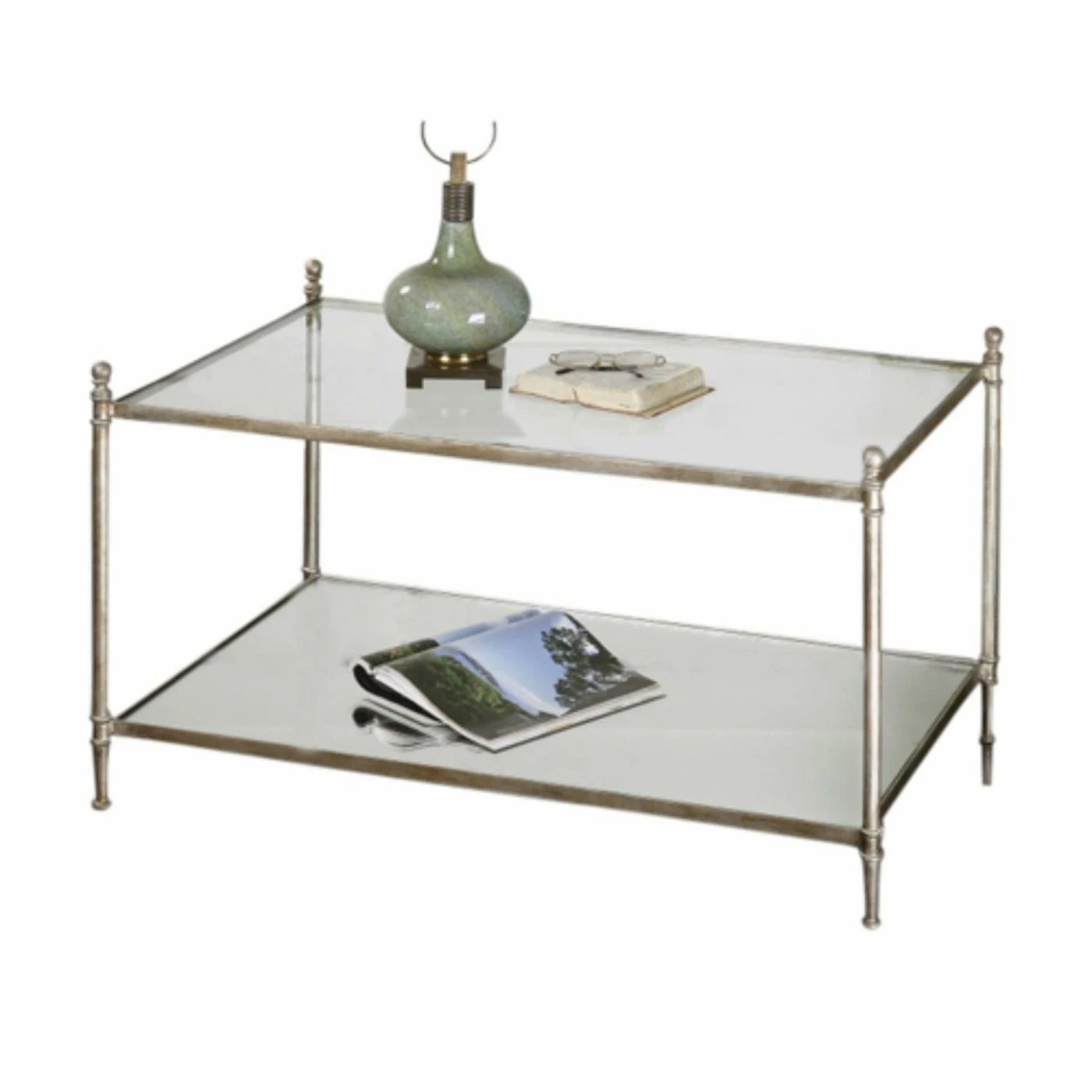 Bound to catch a minimalist’s eye, the Uttermost 24281 Gannon Coffee Table has simple yet stylish contours to accentuate your home. Its durable quality is expressed in its forged iron frame that has an attractive antique finish to it. This coffee table is further visually enhanced with its clear, tempered glass top and a mirrored surface for its gallery shelf. Reflecting your exquisite taste, it’s a welcome addition to any home.
