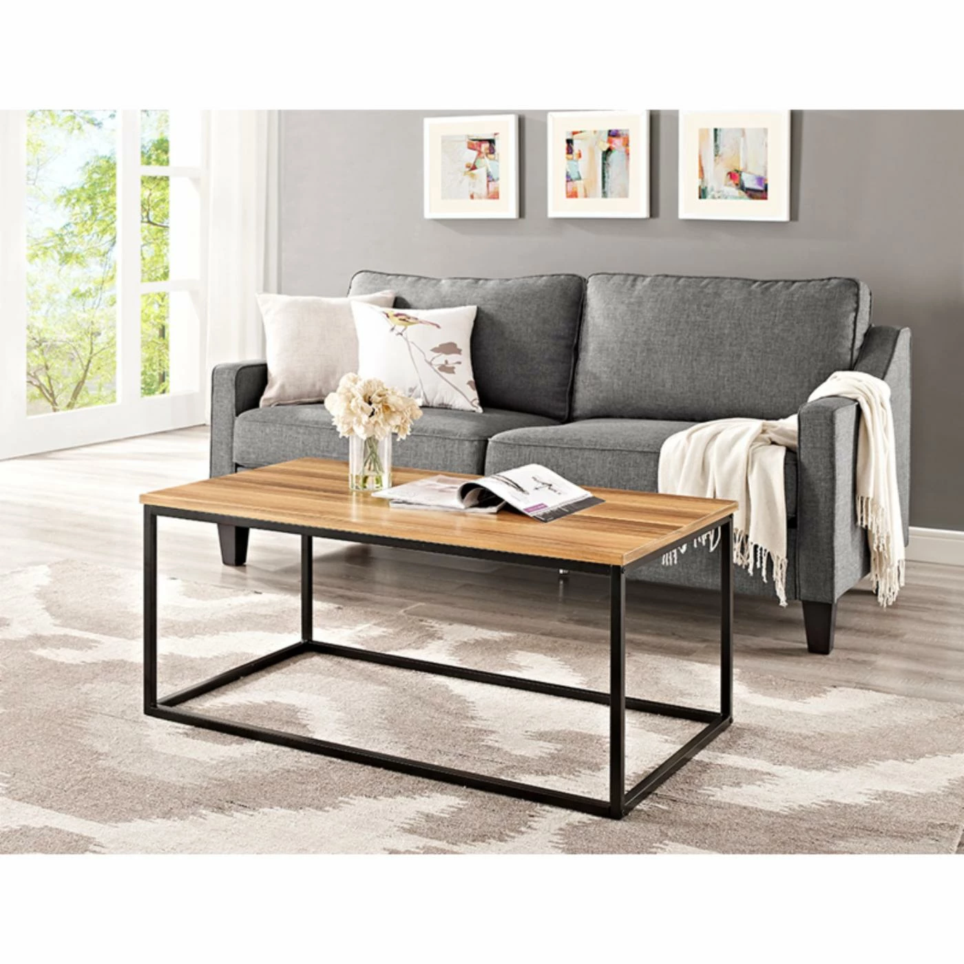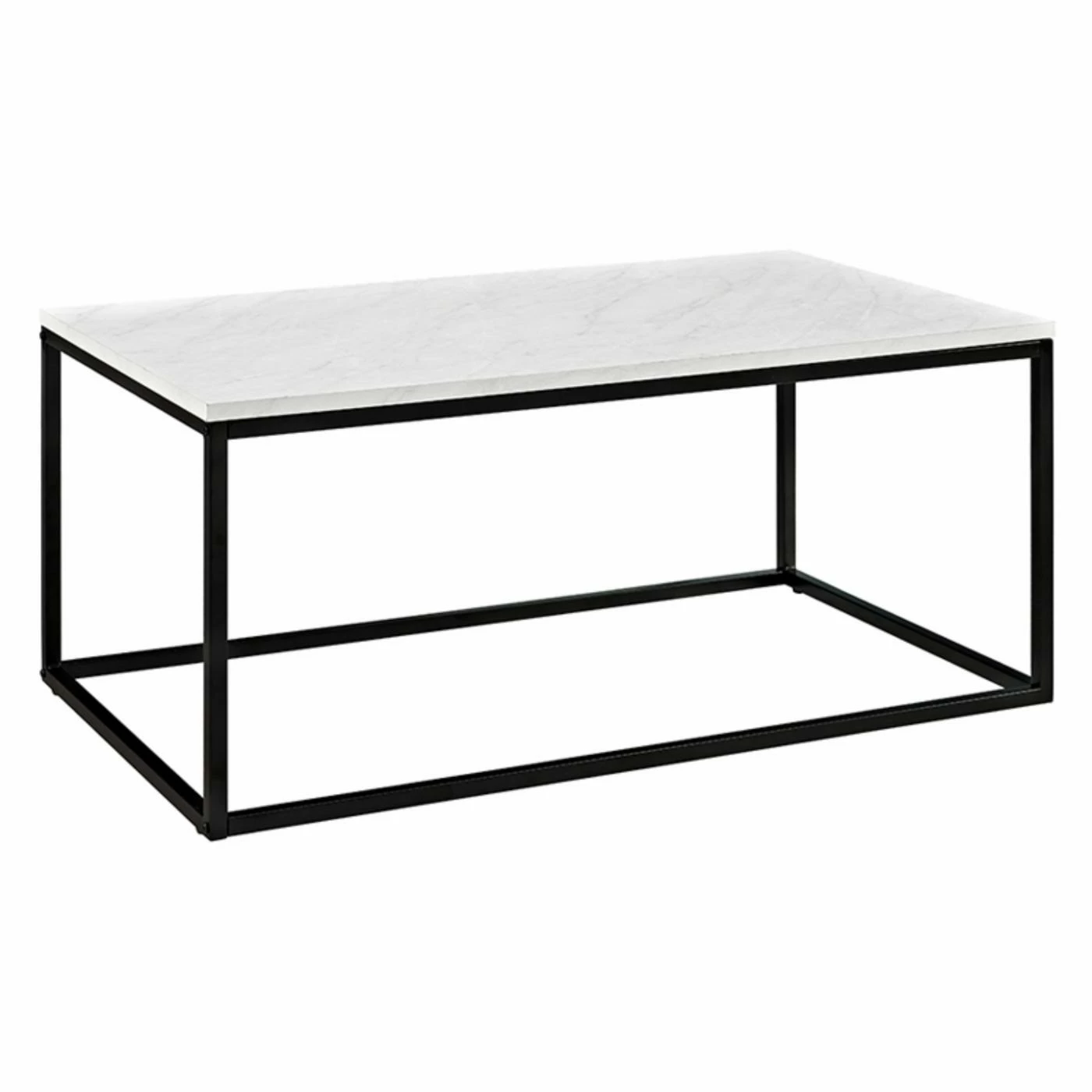 The Walker Edison Open Box Coffee Table has a pleasantly minimalist form that will conform to the style of any space it graces. The open form of this elegant table starts with a welded metal frame under a powder-coated finish. Crafted from durable engineered wood with a scratch-resistant laminate exterior, the table top is offered in options that mimic the look of natural materials. Choose from available finishes to personalize this table to your liking.