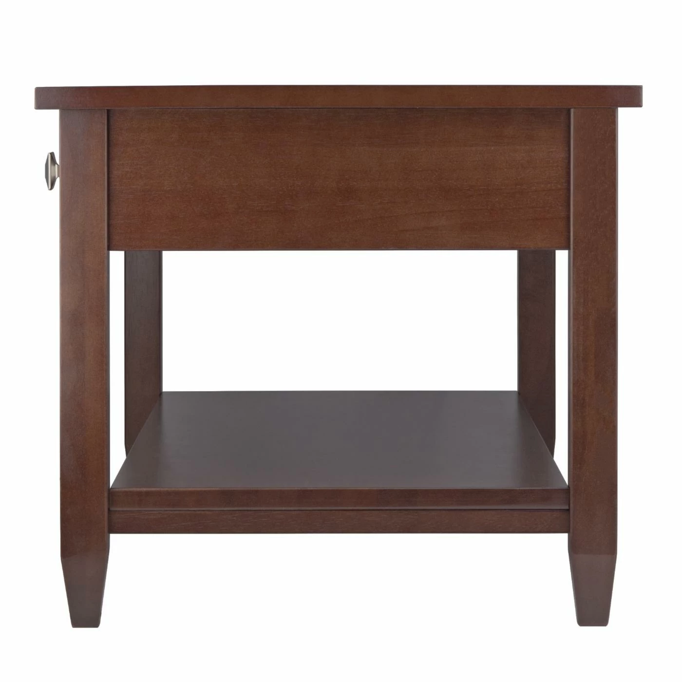 The Winsome Richmond Coffee Table Tapered Leg brings sleek retro chic to the contemporary living room. This walnut finish vintage wood table rests on elegantly tapered legs and sports an appealingly open frame, with the cool and useful feature of a pull-out drawer fronted by two large beveled knobs.