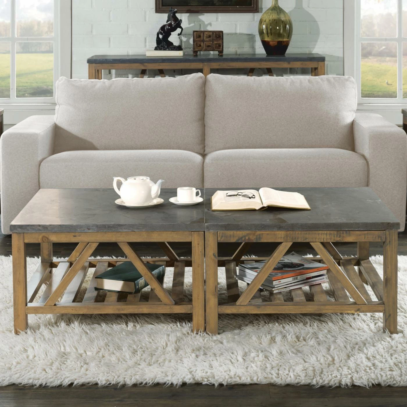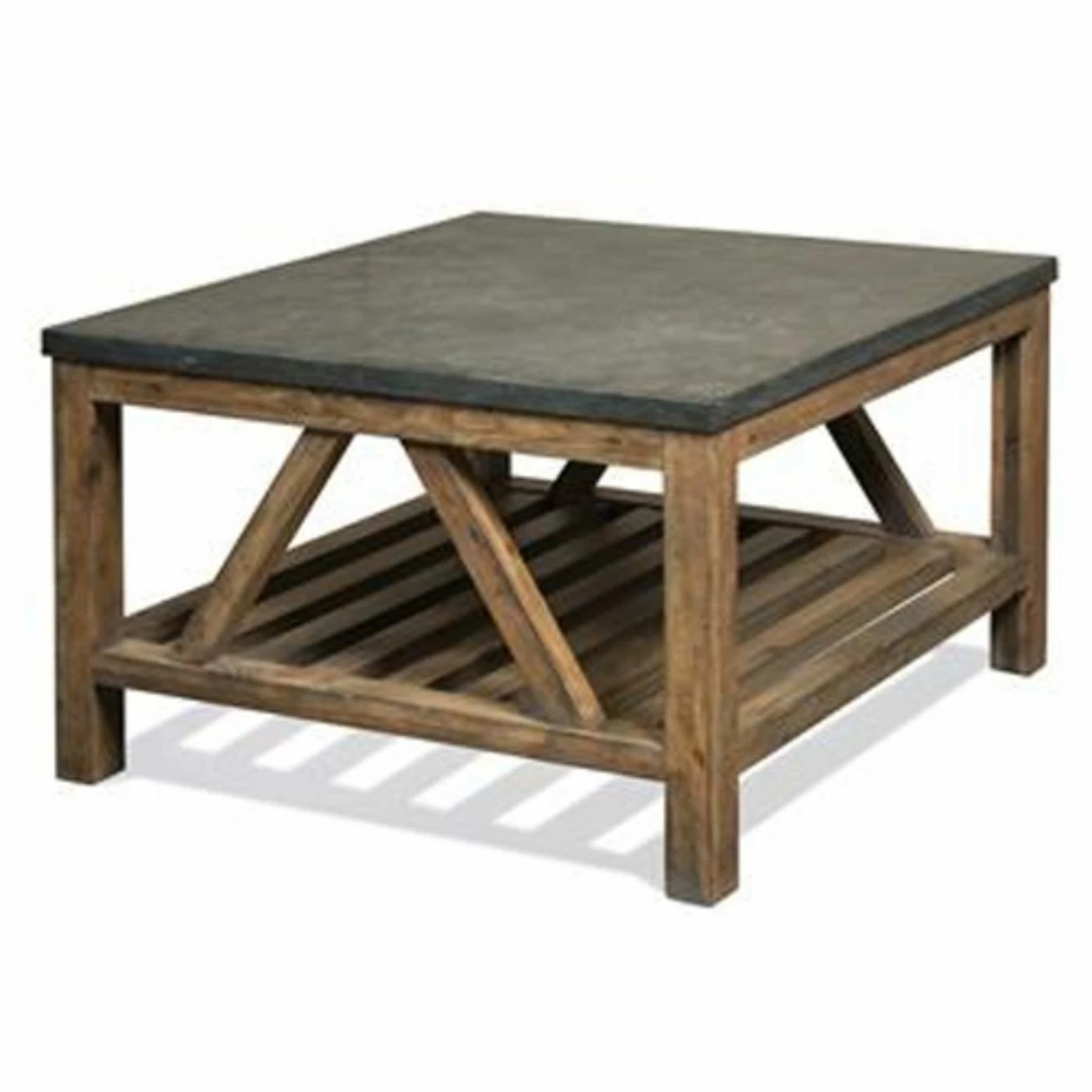 With its rustic charm and simple elegance, the Riverside Weatherford Bunching Cocktail Table is a stunning addition to any home. Beautifully designed, this table features a gorgeous base made from reclaimed pine in a natural finish which brings out the richness of the bluestone top. Its fixed wood slat bottom shelf is ideal for storing magazines or coffee table books while its top gives you the perfect place to set down your drinks and plates while spending time with friends. A great choice for anyone who loves a more natural style, this cocktail table complements a wide variety of decors.