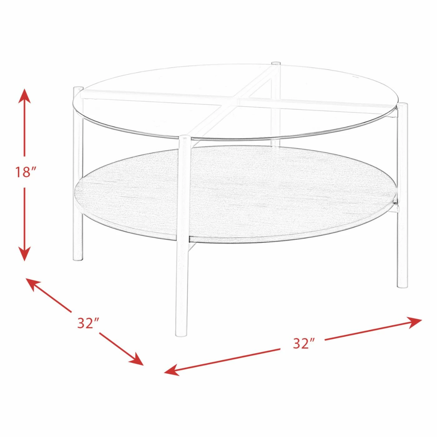 - Coffee table dimensions: 34 diam. x 18H in.