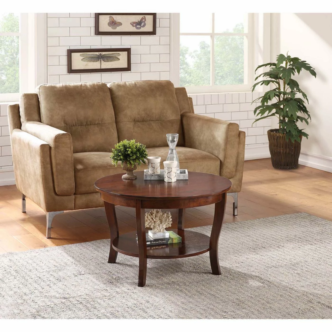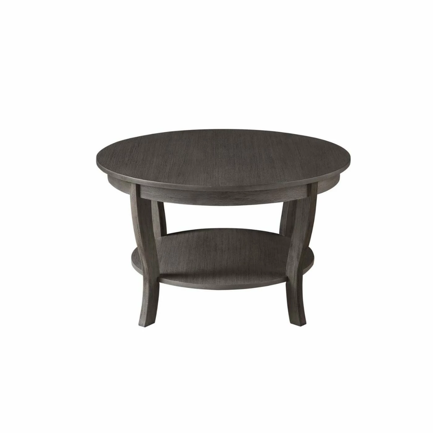 Decorative items, your morning coffee, and your current reads will be kept within reach on the Convenience Concepts American Heritage Round Coffee Table in your living room. The round design of this coffee table features a spacious top and lower shelf. The four curved legs complete the simple and chic look. This engineered wood coffee table comes in your choice of available finish option.