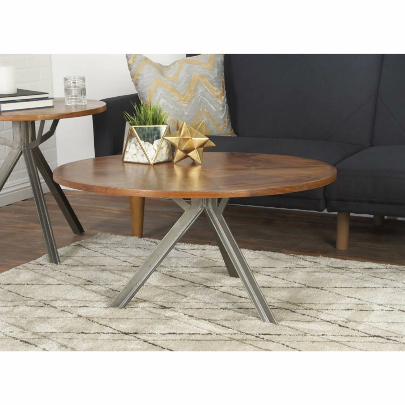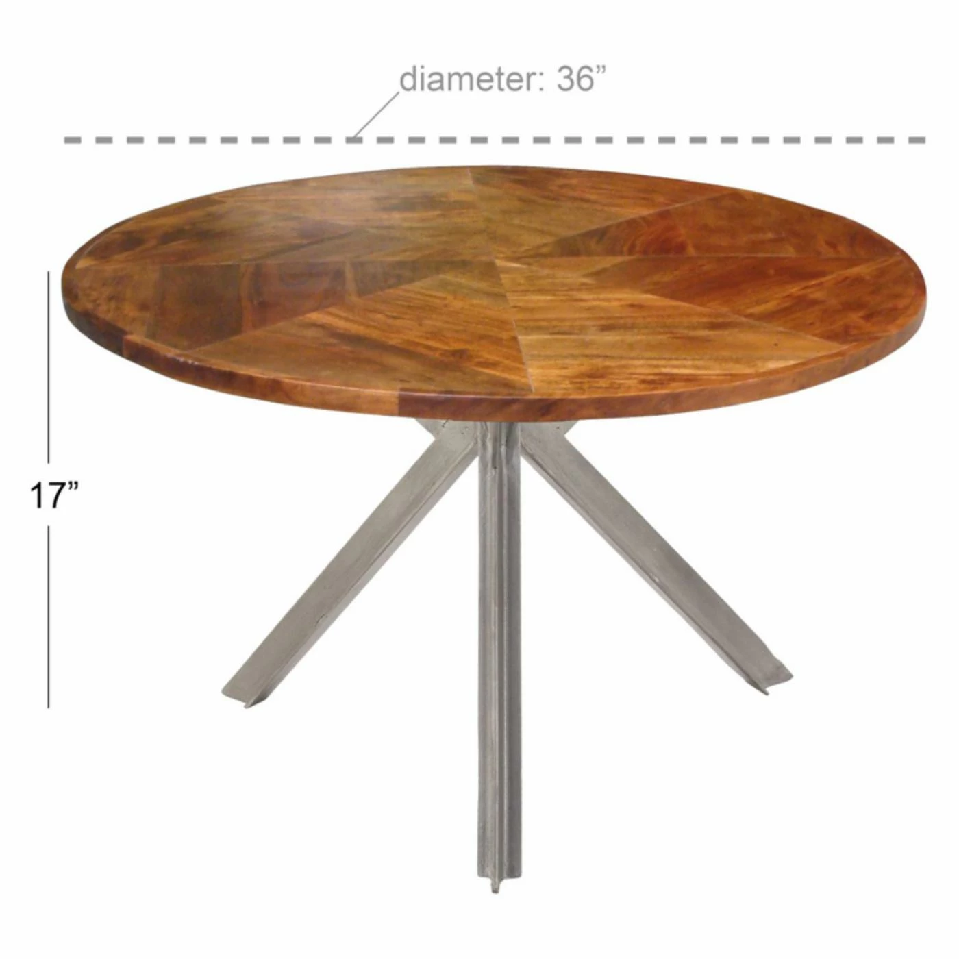 Featuring neutral black and brown colors that complement any palette, the DecMode 36 in. Coffee Table has a minimalist look that is ideal for completing modern seating areas. The design includes a sturdy, round top fabricated out of albizia wood and a durable, iron tripod base.