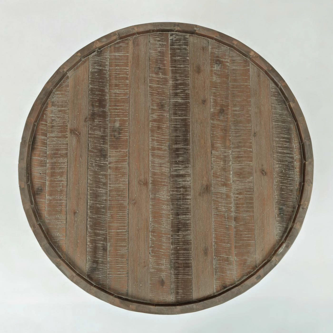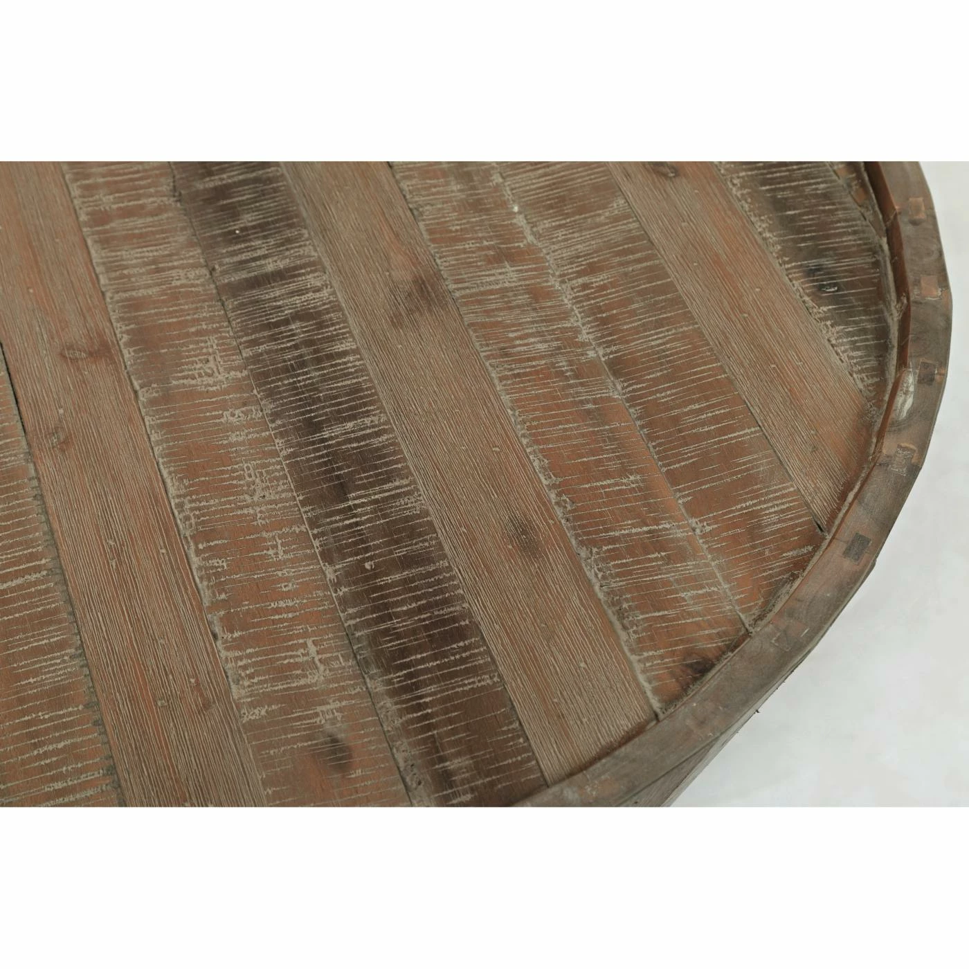 - Raised rim and planked design