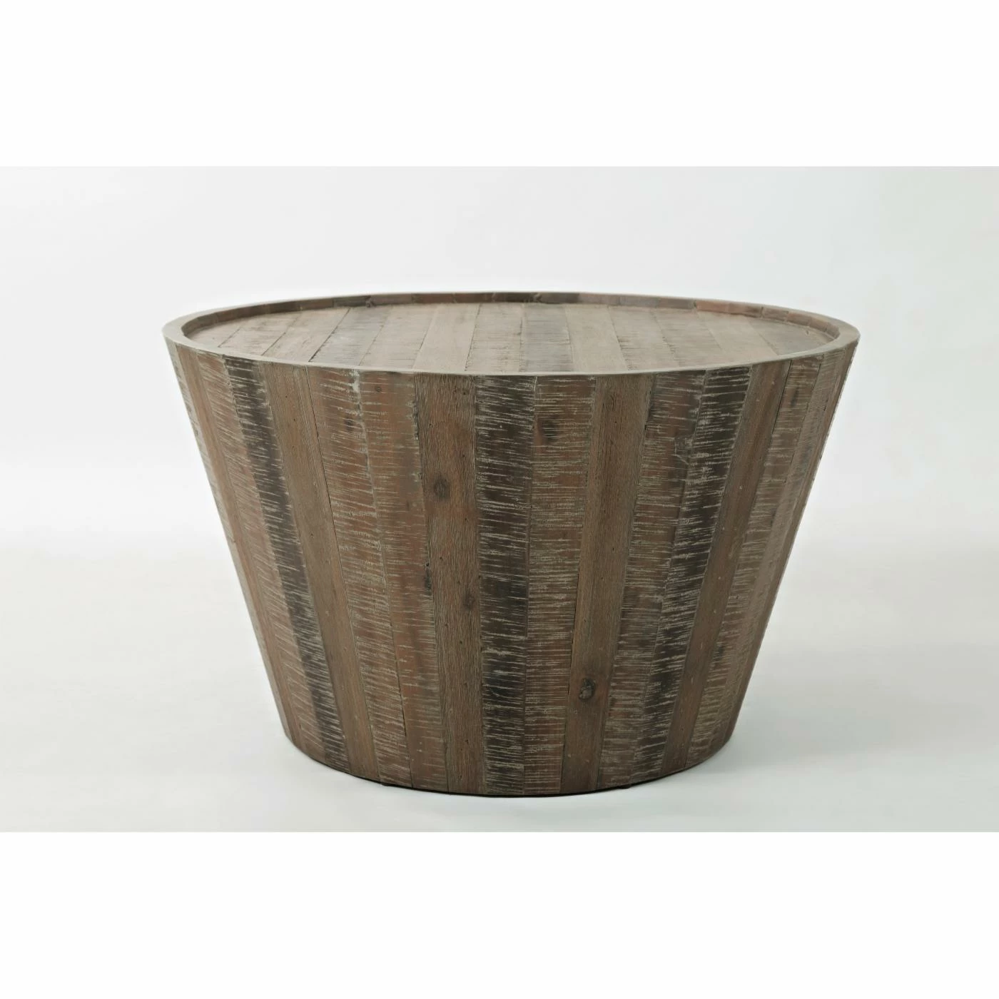Provide your home bar or breakfast nook with the Jofran Conundrum Cocktail Table for a casual centerpiece that’s ideal for small meals, drinks, and more. This round table sports a flared, tapered design constructed from solid acacia wood planks. A raised edge lends a rim to help keep drinks and plates aboard. The wood features a natural unfinished tone and is accented with a distressed wire-brush texture.