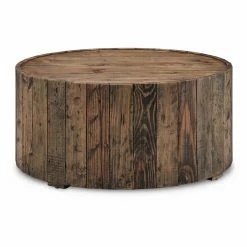 The chic round design of the Magnussen Dakota Round Cocktail Table makes it an instant statement piece in your space. Crafted from reclaimed wood, it features grain detail that is unique to each piece. The rustic pine finish emphasizes the natural colors and detail. Casters along the bottom let you move it with ease when needed.