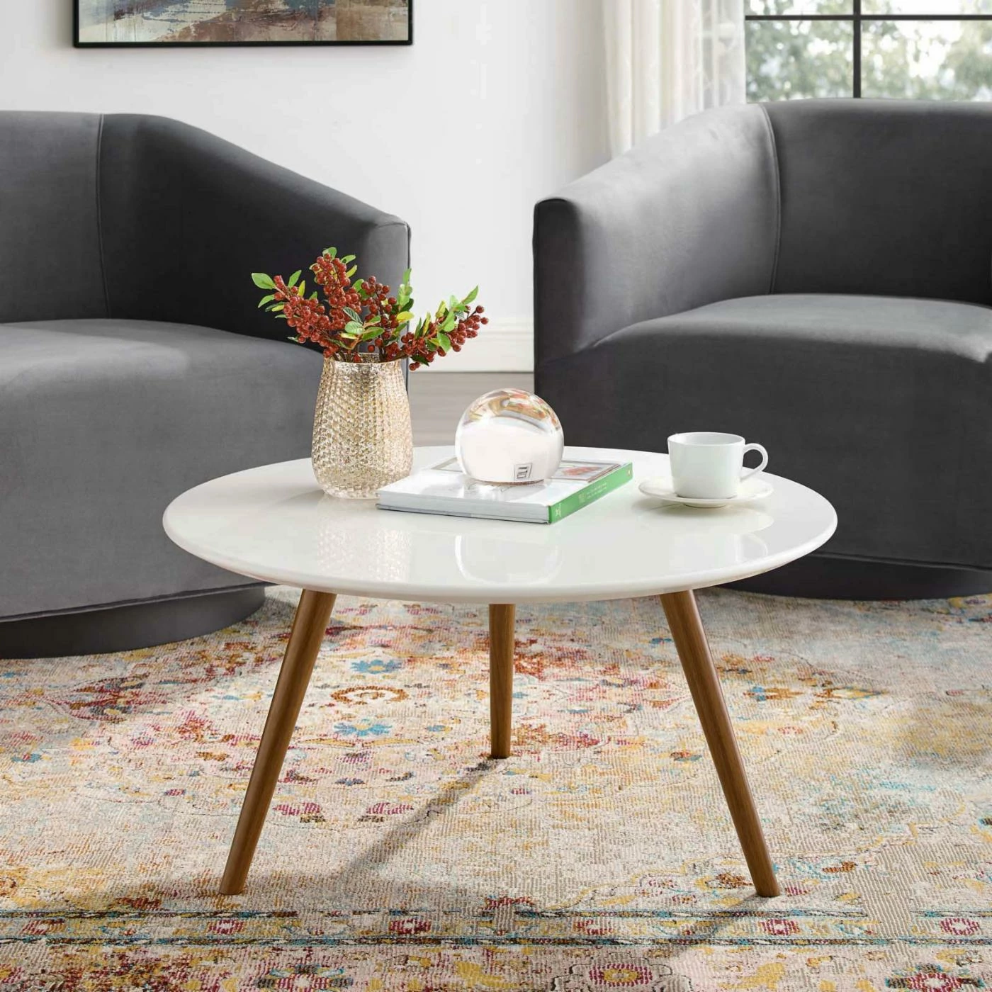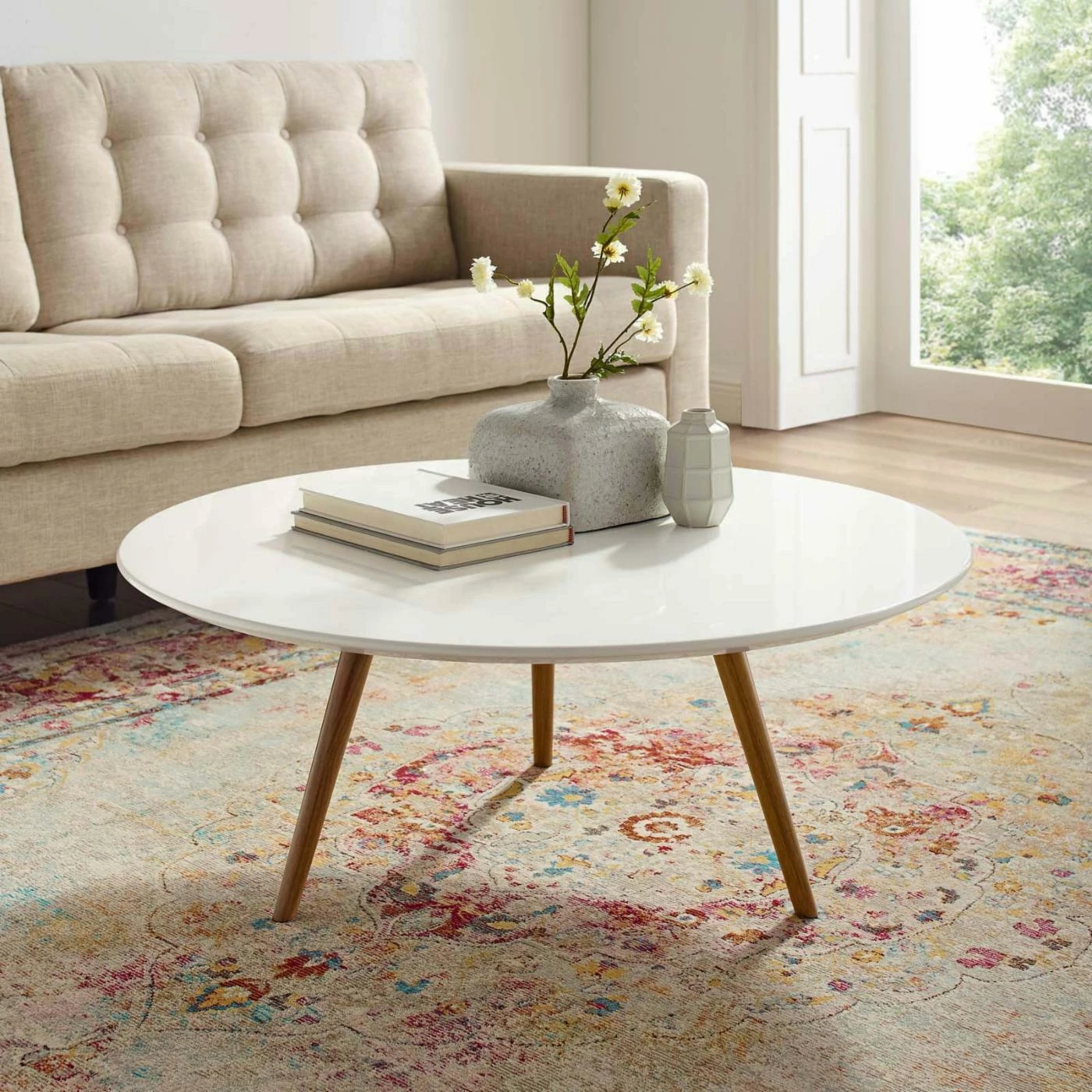 Choose from available sizes and leg finishes to find the Modway Lippa Round Top Coffee Table with Tripod Base that works best for your home. Some assembly required.