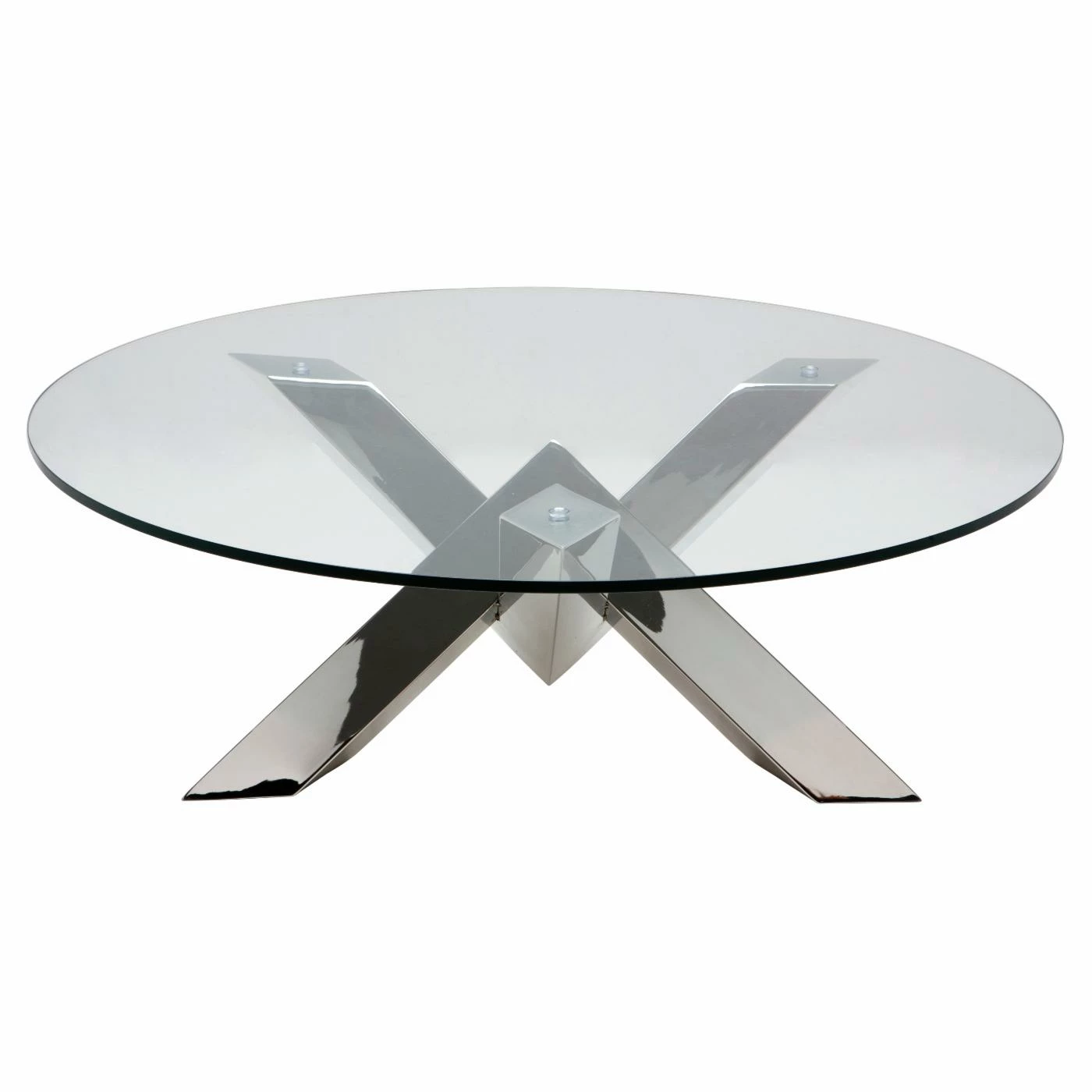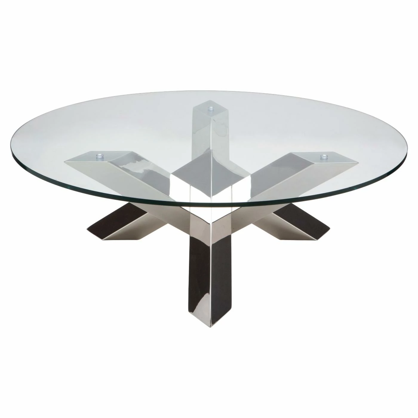 The Nuevo Costa Coffee Table is a masterpiece of modern design. This piece comes in your choice of available finishes, polished for an extraordinary shine, and topped in thick, clear glass, tempered for extra strength. Featured is a superb base design: two thick interlocking triangular pyramid outlines touch the ground and table top at three points each, making this as uniquely artistic as it is functional. This piece will spice up your space for sure.
