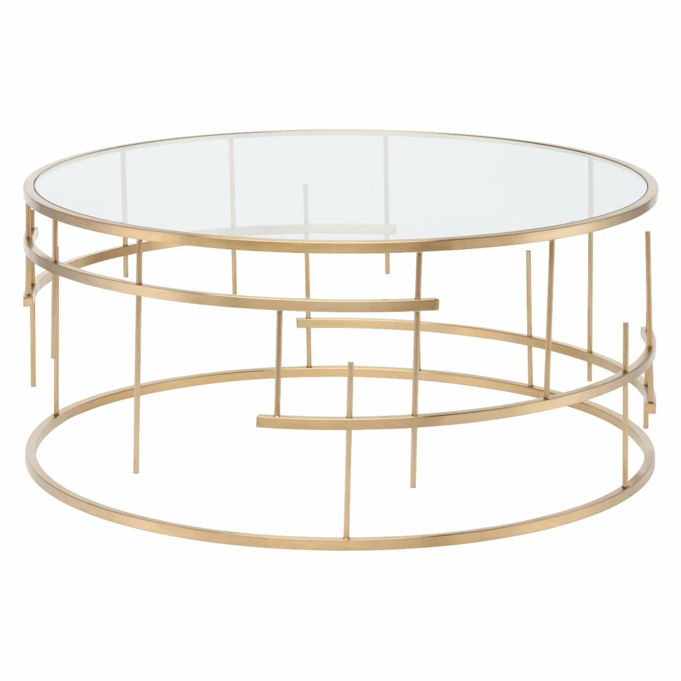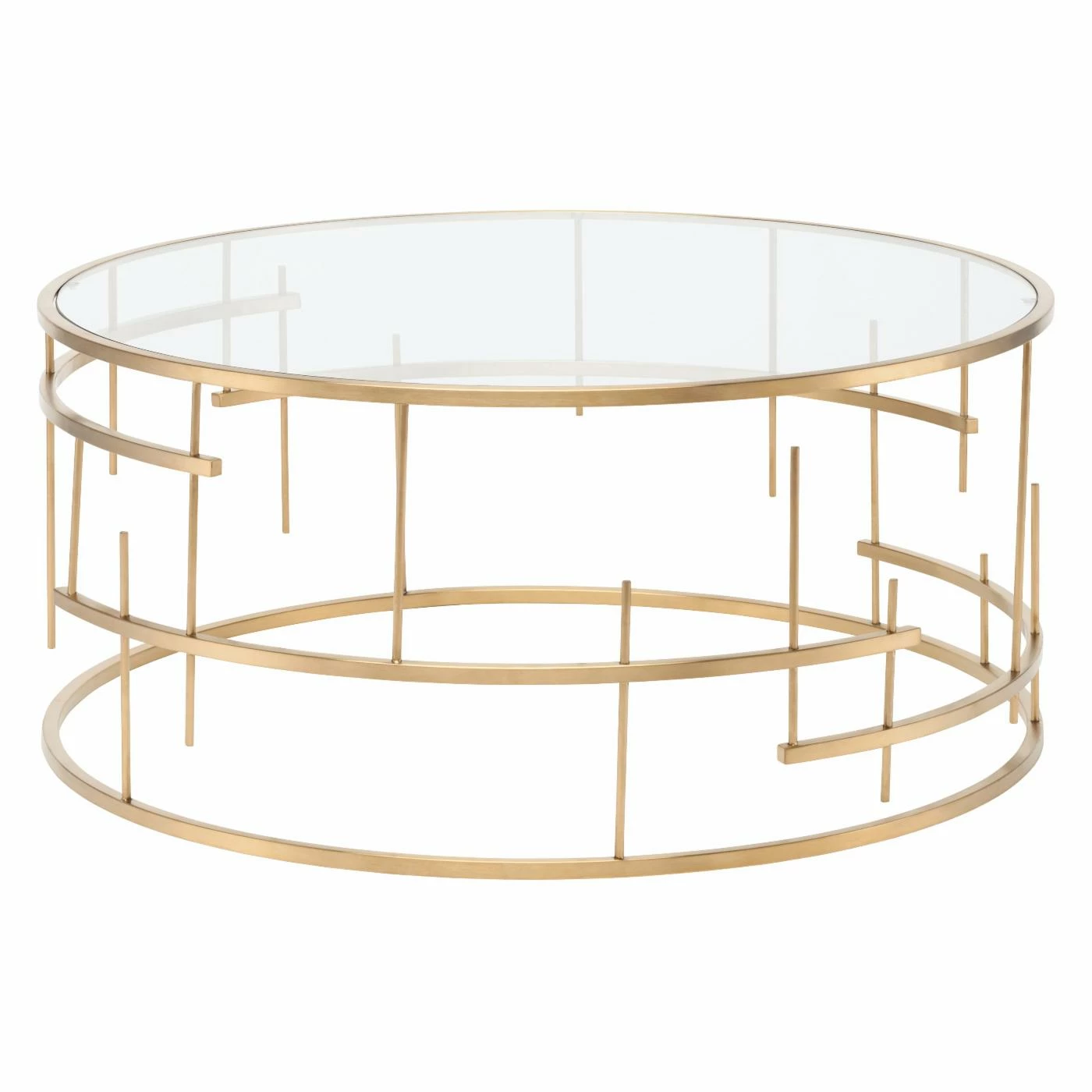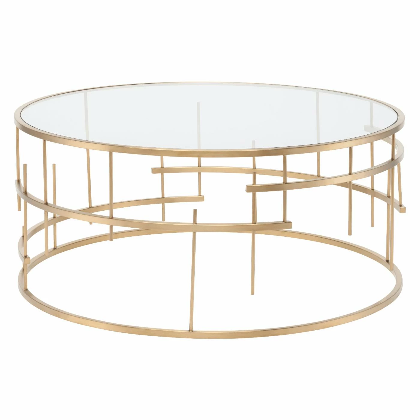 The Nuevo Tiffany Coffee Table offers elemental design in essential home furnishing. This coffee table combines the deconstructed basket-style base in stainless steel with a crystal clear round glass top for a stunning answer in modern coffee tables. It’s so much more than a place to set your coffee mug in the morning. The base comes in your choice of available finishes.