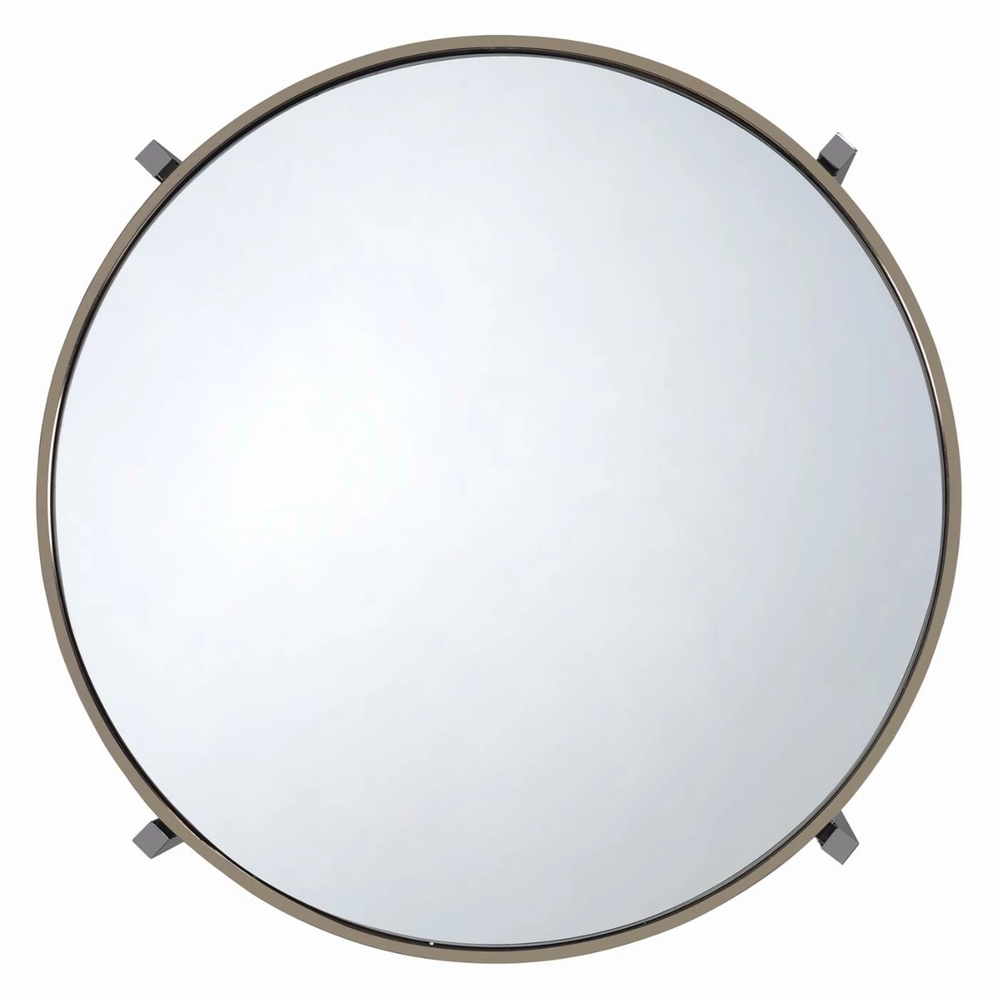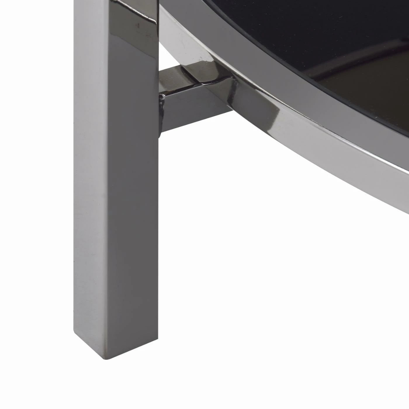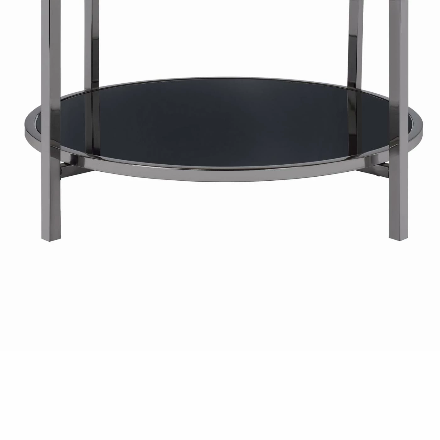 The Picket House Furnishings Monaco Round Coffee Table features a mirrored top trimmed in polished gold and a black tempered glass lower shelf. A silver framework lends stylish stability to this coffee table.