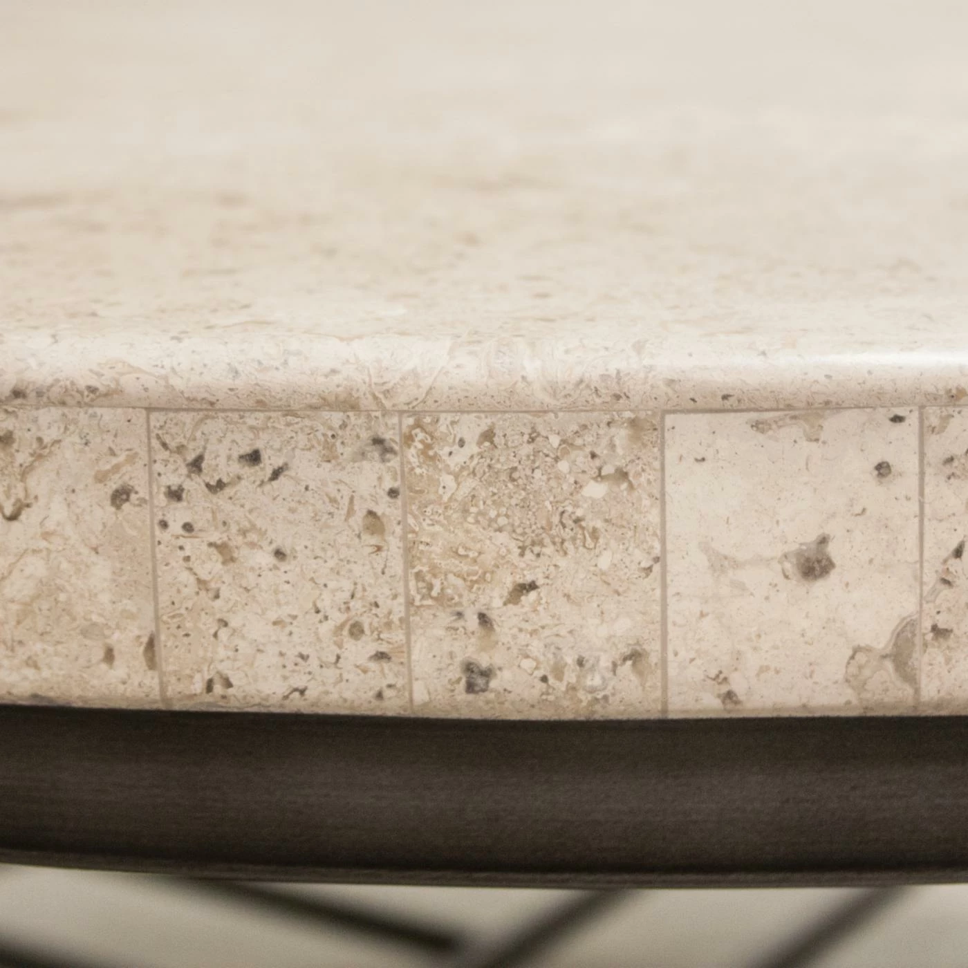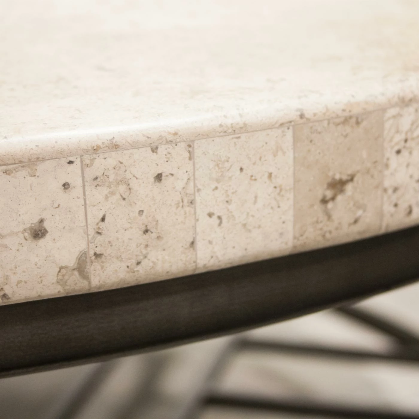 - Sturdy metal base with genuine travertine stone top