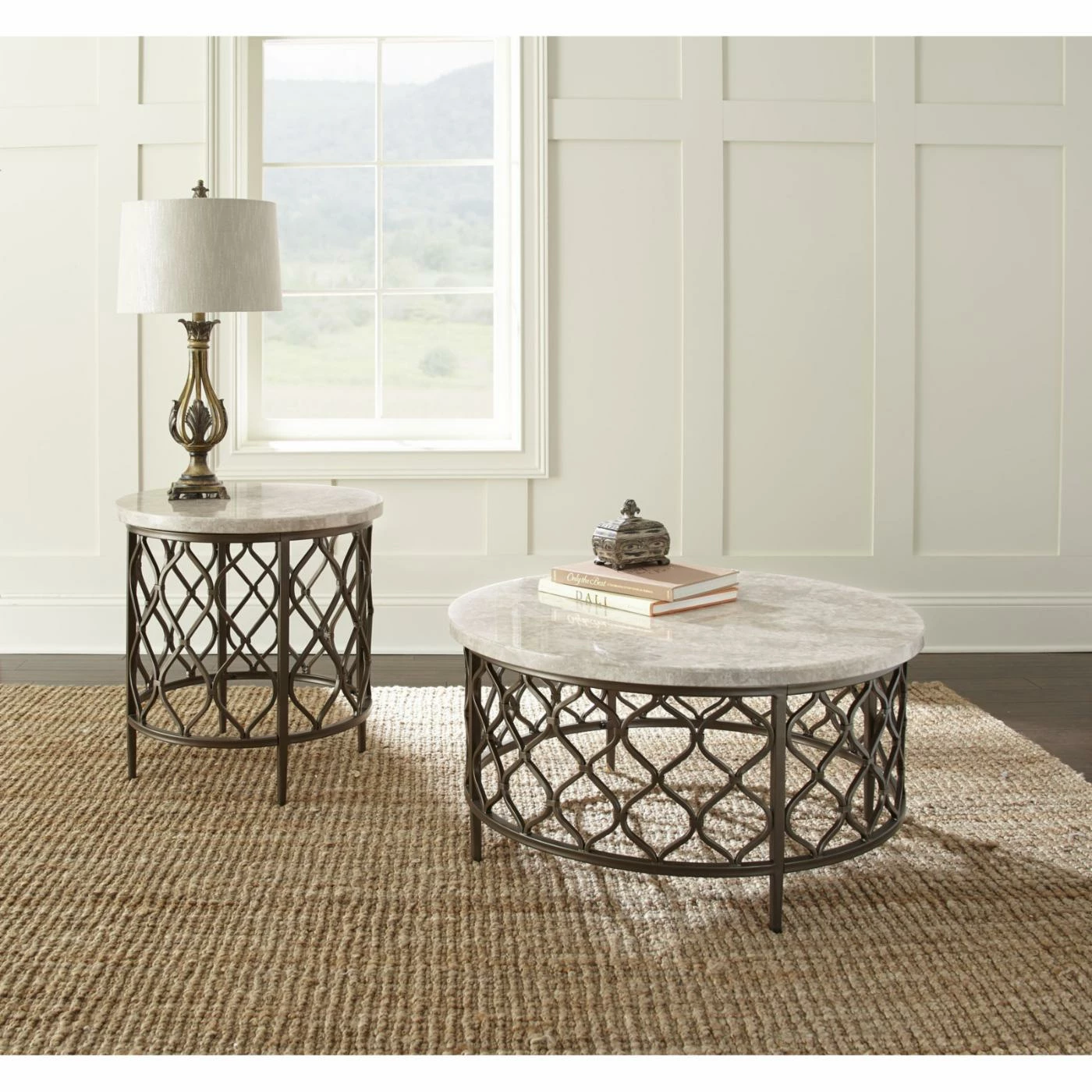 A global living room or transitional entertaining room needs the Steve Silver Co. Roland Round Cocktail Table as its center. This round cocktail table features an off-white marble top. The iron base is a fretwork of ogee shapes with a bronze, powder-coated finish. Use this cocktail table to serve drinks or display treasured or decorative pieces.