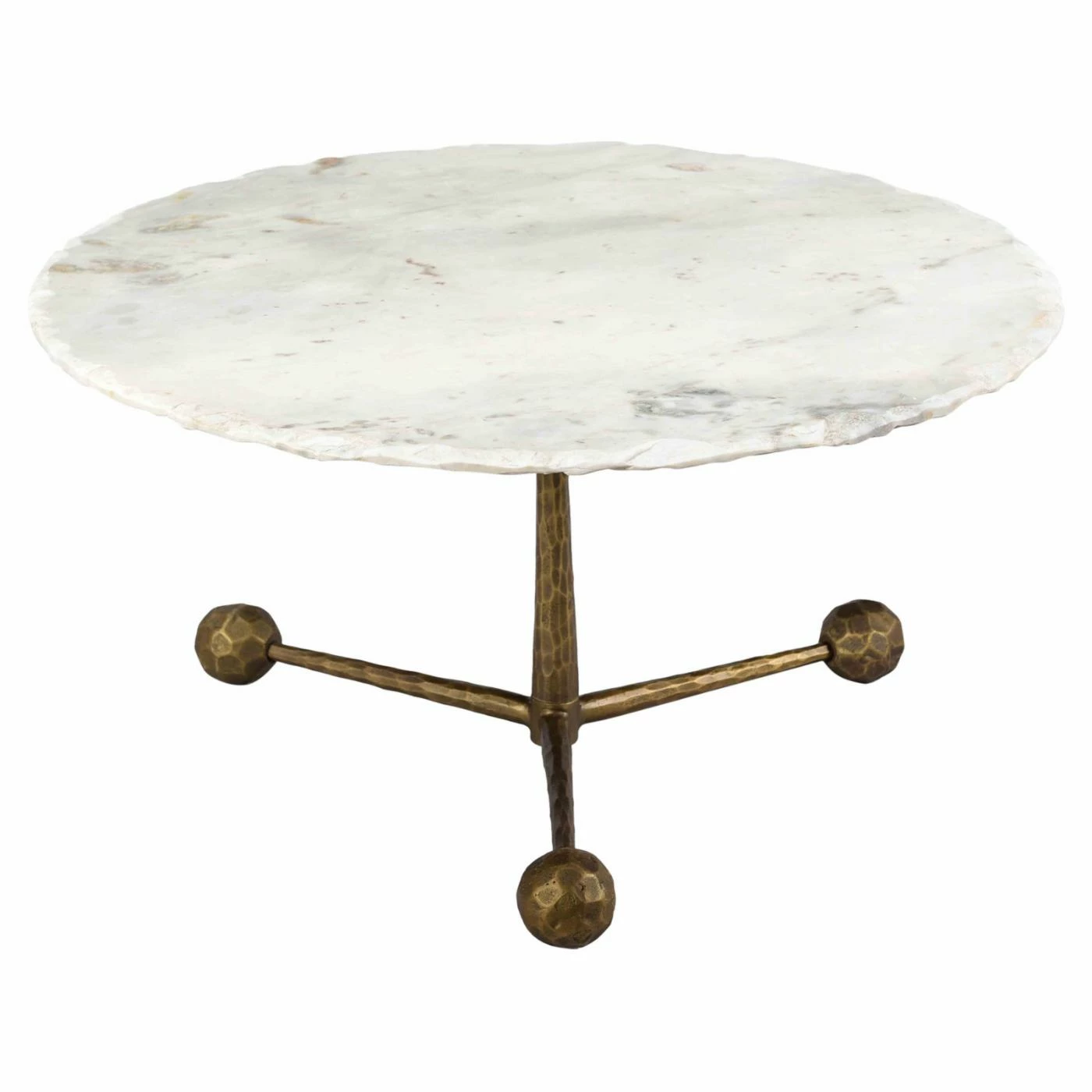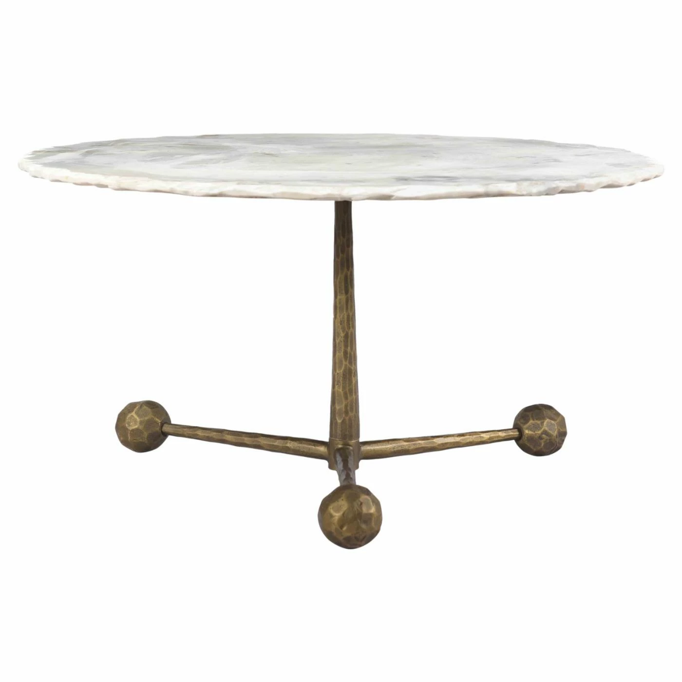 - Hand-hammered iron legs in antique brass finish