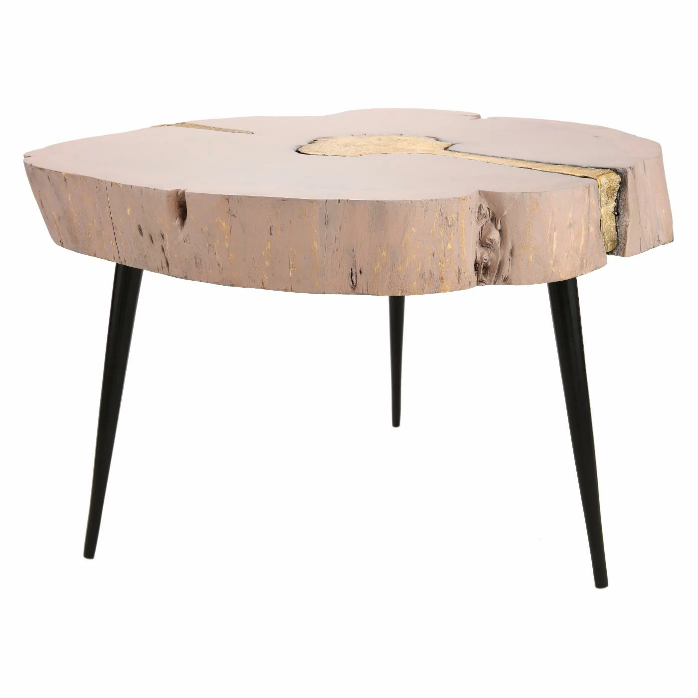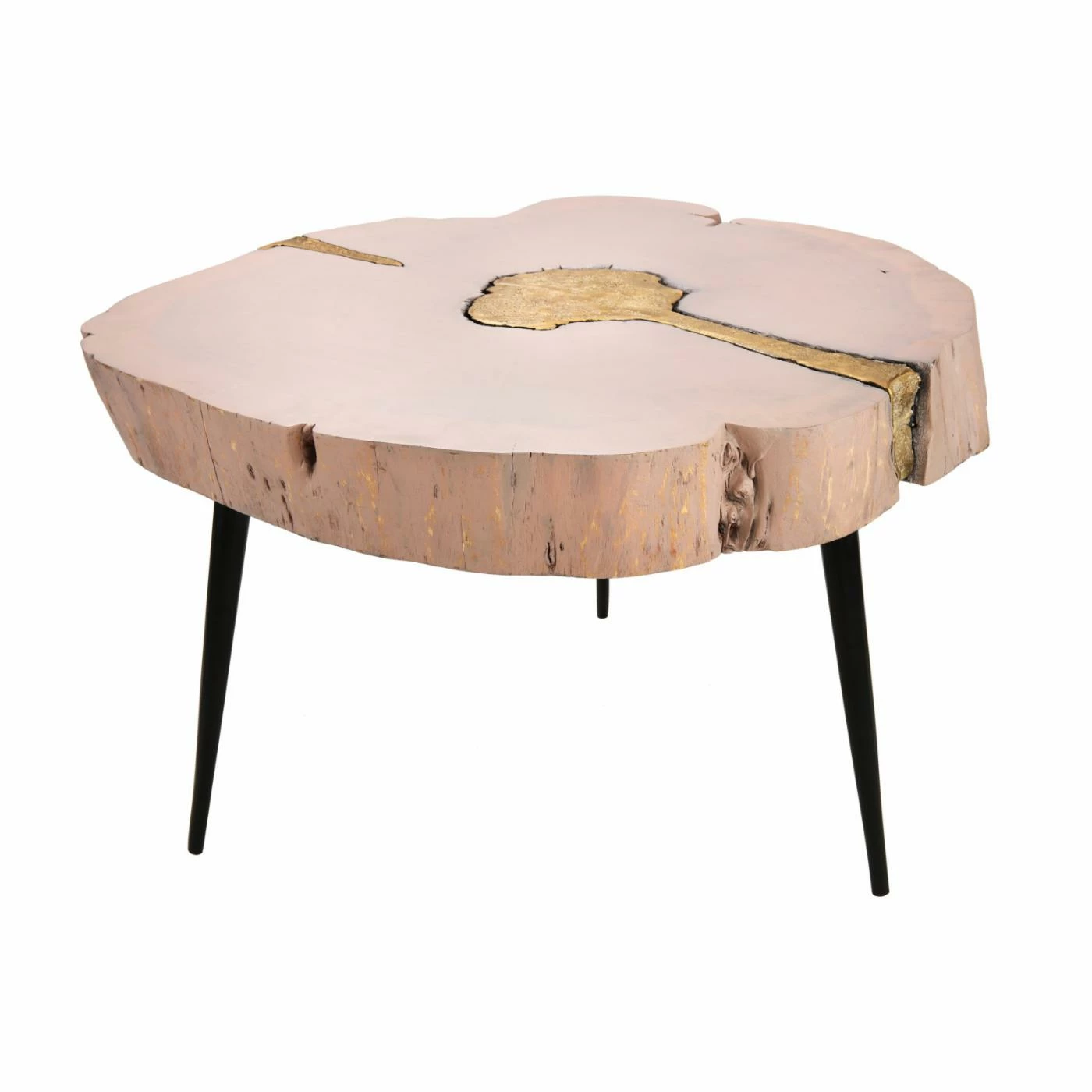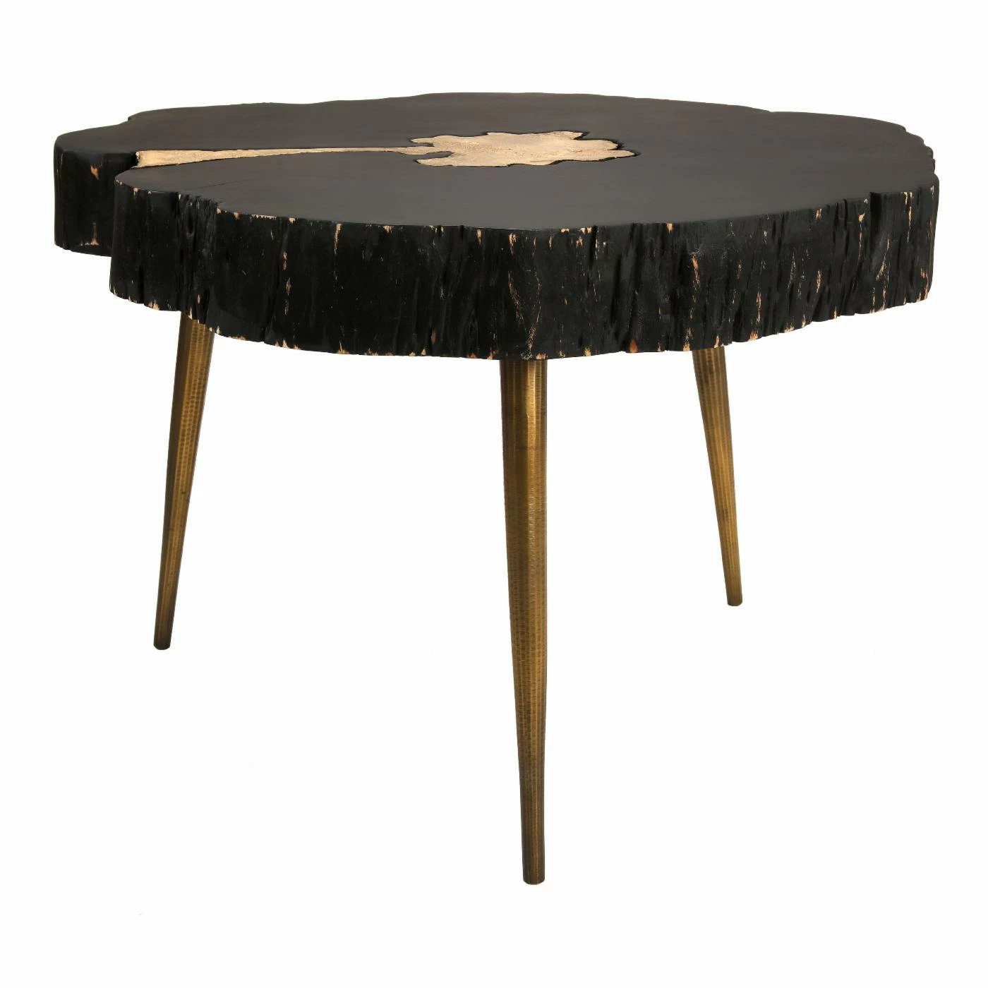 Even tried-and-true mid-century looks could use an update; the TOV Furniture Timber Cocktail Table takes a classic form and splashes it with some on-trend glam. This table is hand-crafted using a thick slab of hardwood supported by aluminum legs. The top sports a live edge, painted finish, and brass knot-filling. The tapered aluminum legs are treated to a brushed gold finish. Choose from available finish options for the top.