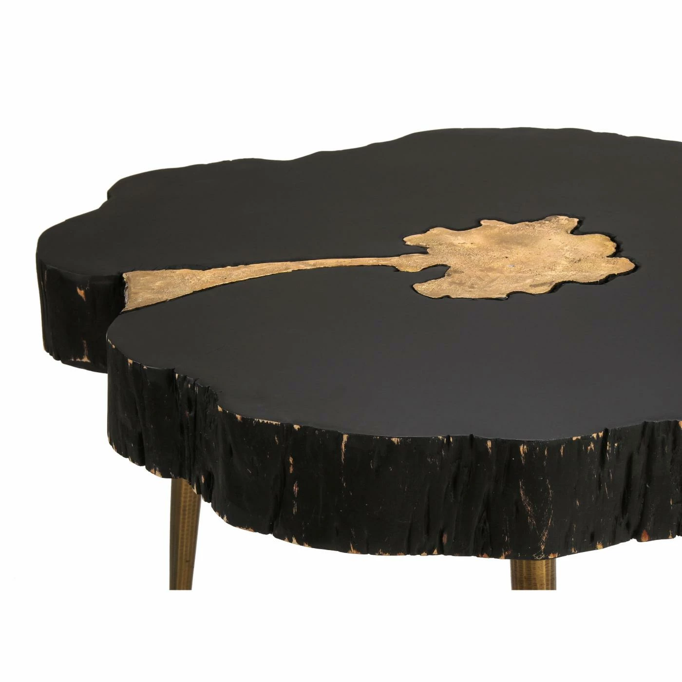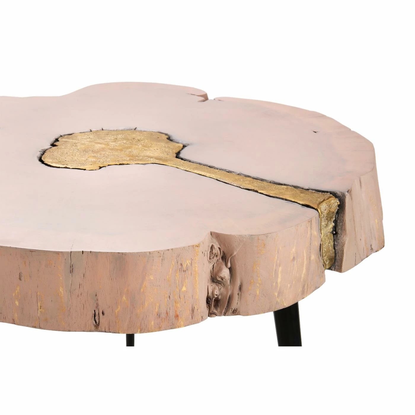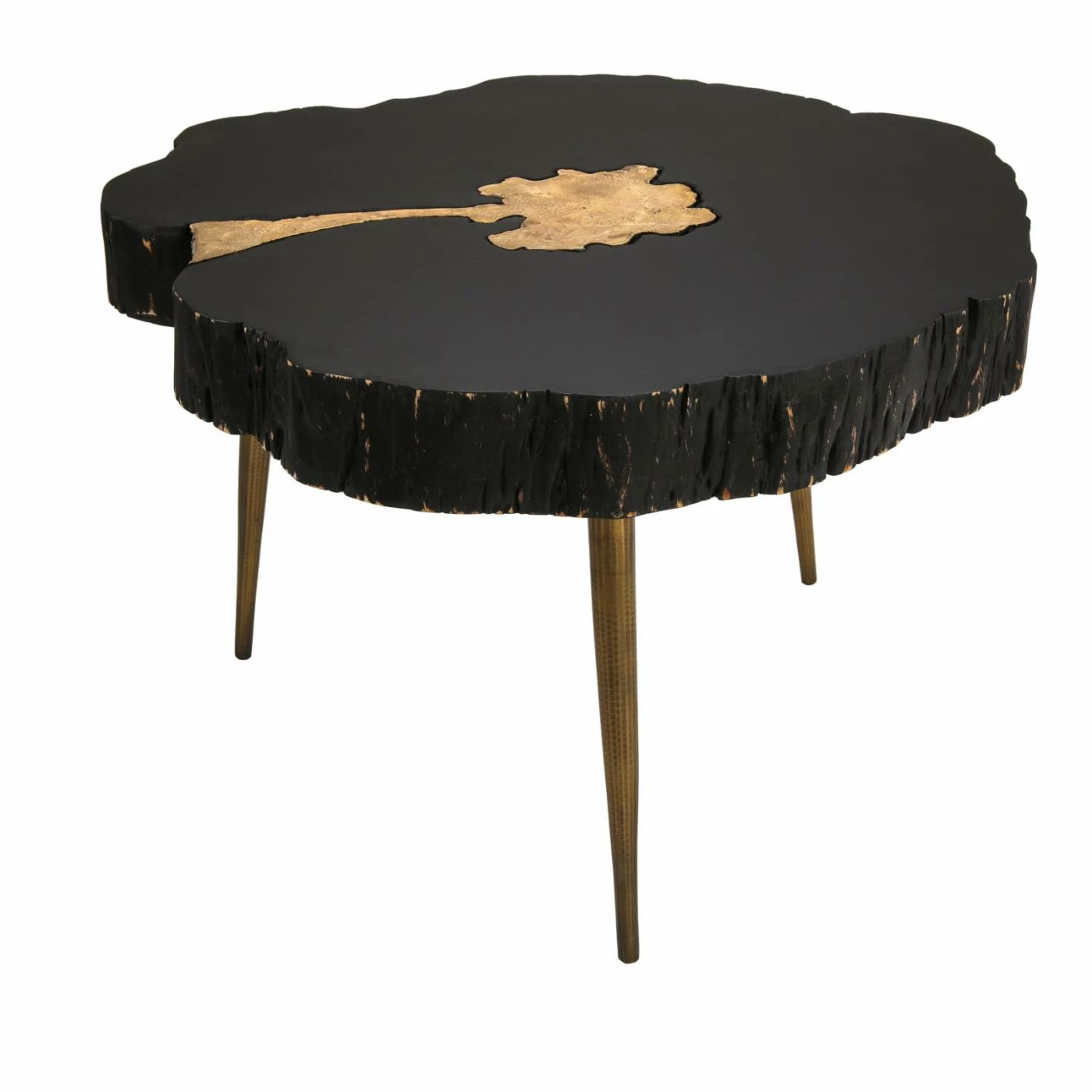 Even tried-and-true mid-century looks could use an update; the TOV Furniture Timber Cocktail Table takes a classic form and splashes it with some on-trend glam. This table is hand-crafted using a thick slab of hardwood supported by aluminum legs. The top sports a live edge, painted finish, and brass knot-filling. The tapered aluminum legs are treated to a brushed gold finish. Choose from available finish options for the top.