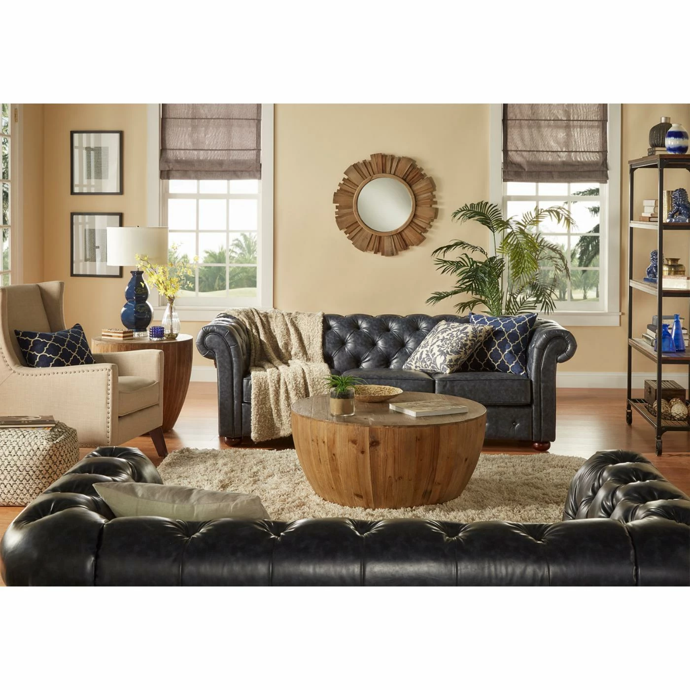 The Weston Home Adeline Southwestern Barrel Coffee Table works perfectly with your modern organic, rustic southwestern, or eclectic dΓ©cor. This generous round coffee table is built of reclaimed cedar planks in a natural finish that allows the character of the wood to shine. Its round shape fits neatly in front of your loveseat, sofa, or within your sectional.