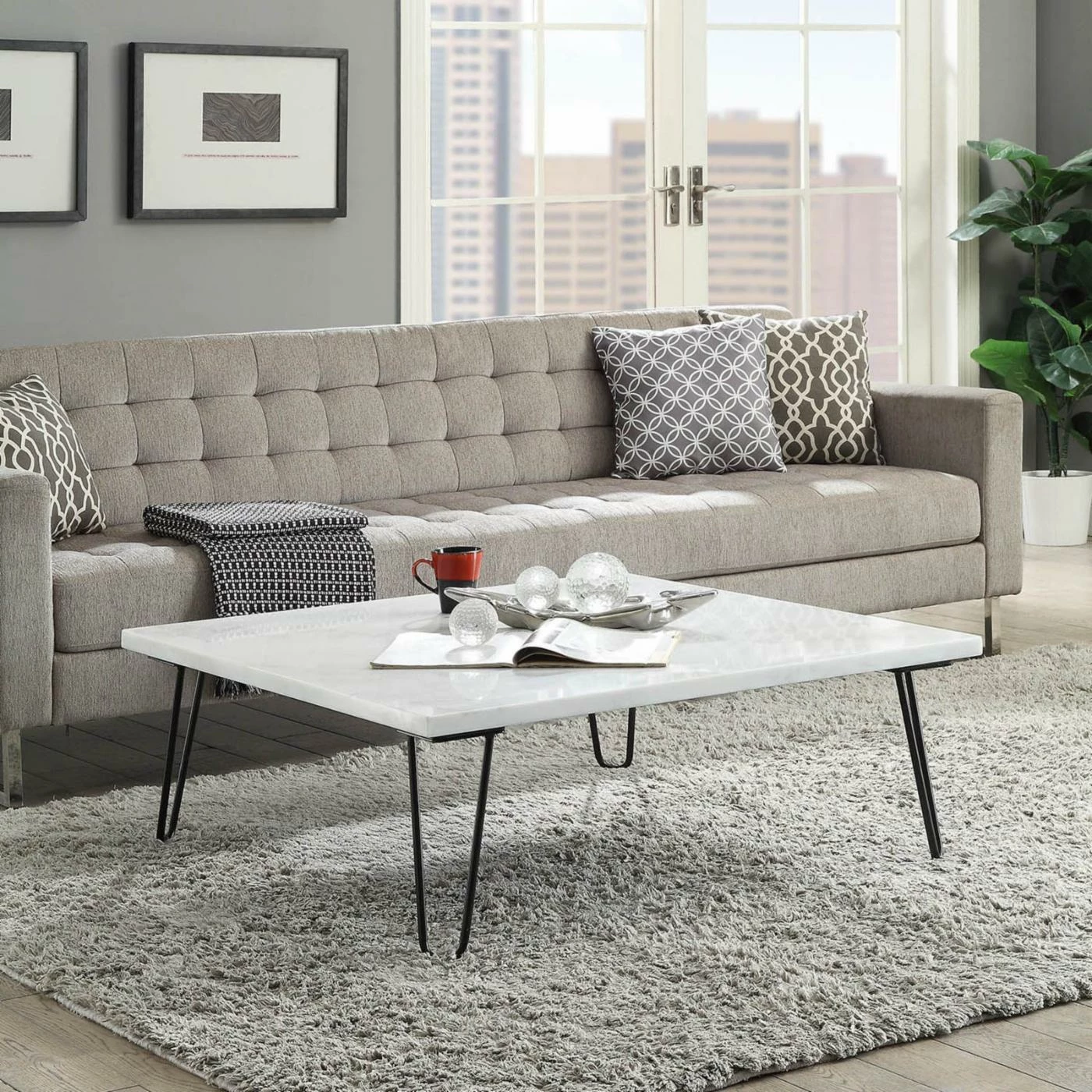 Sturdy and understated, the Acme Furniture Telestis Square Coffee Table brings the beauty of genuine marble to your living room or great room. The sturdy hairpin legs are offered in your choice of available finishes for just the right look. The versatile styling allows this table to be dressed up or down to suit your lifestyle. It’s sure to be a home essential you’ll treasure for years.
