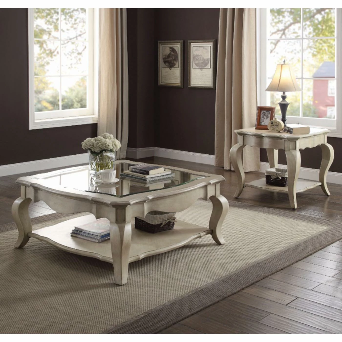 The Benzara Charming Square Glass Top Coffee Table wows with its antique-inspired aesthetic. It’s crafted of Schima Superba with a glass insert in the tabletop. The cabriole legs add ornate elegance. This coffee table boasts a bottom shelf for storage and display.
