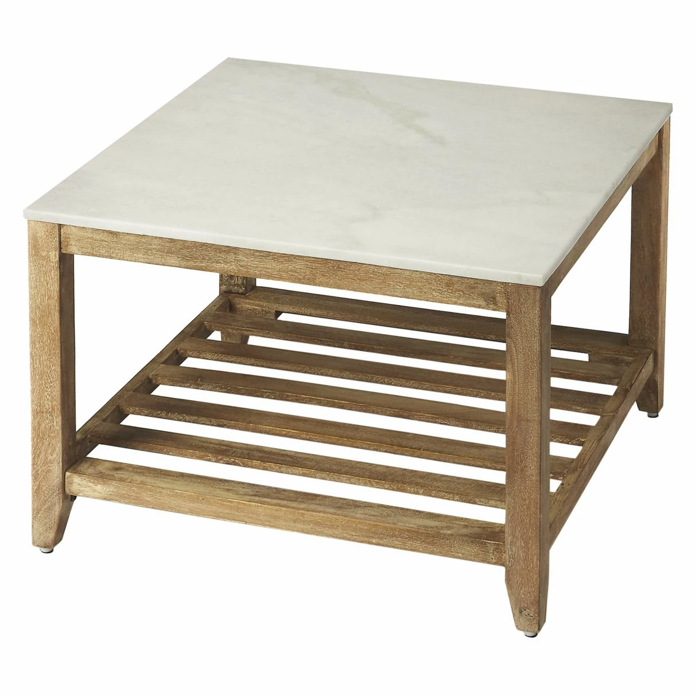 The Butler Specialty Brayden Marble Bunching Coffee Table makes a great addition to your home. This straightforward coffee table boasts a solid mango wood frame that’s paired with a clean, white marble tabletop. The open slat shelf provides additional storage and display space.