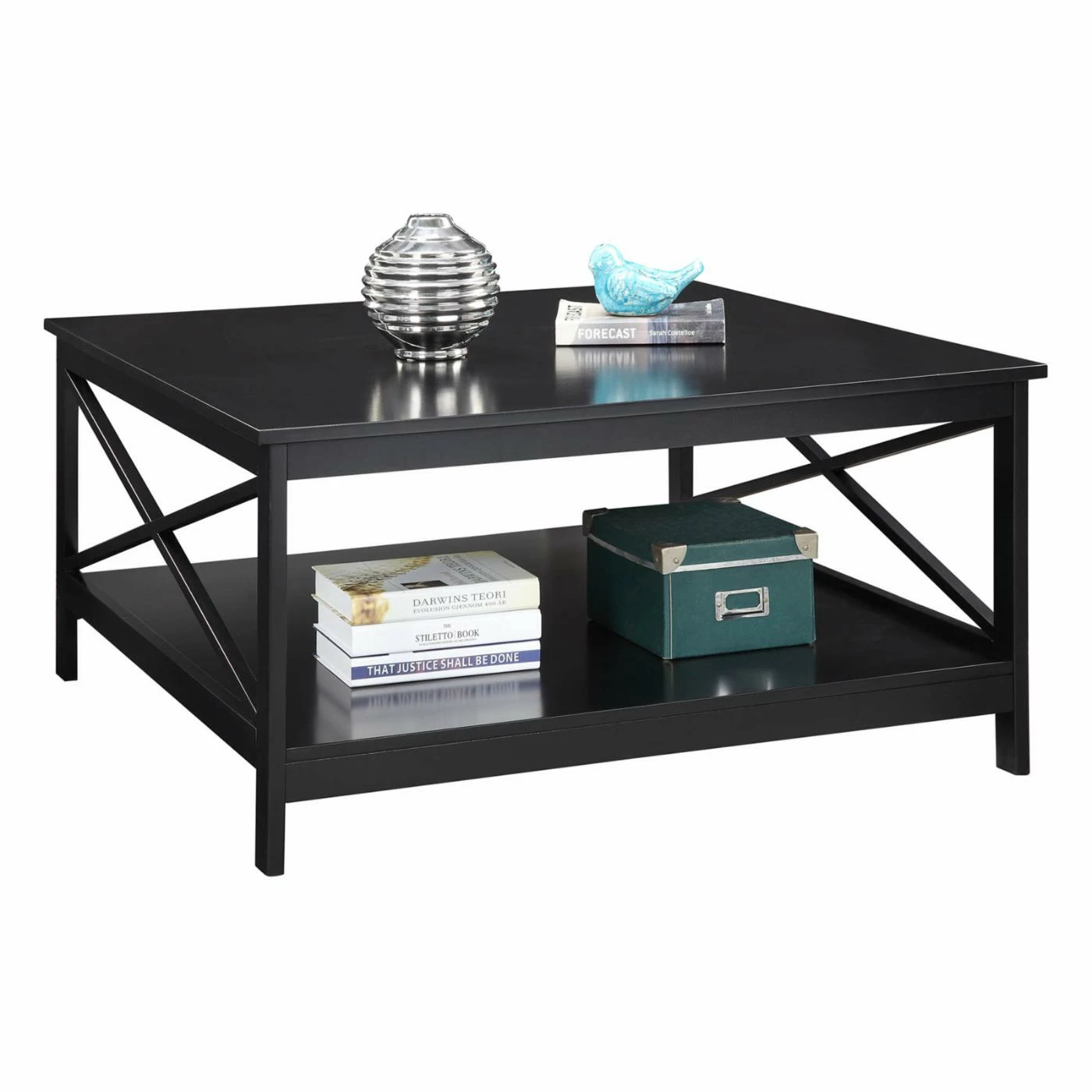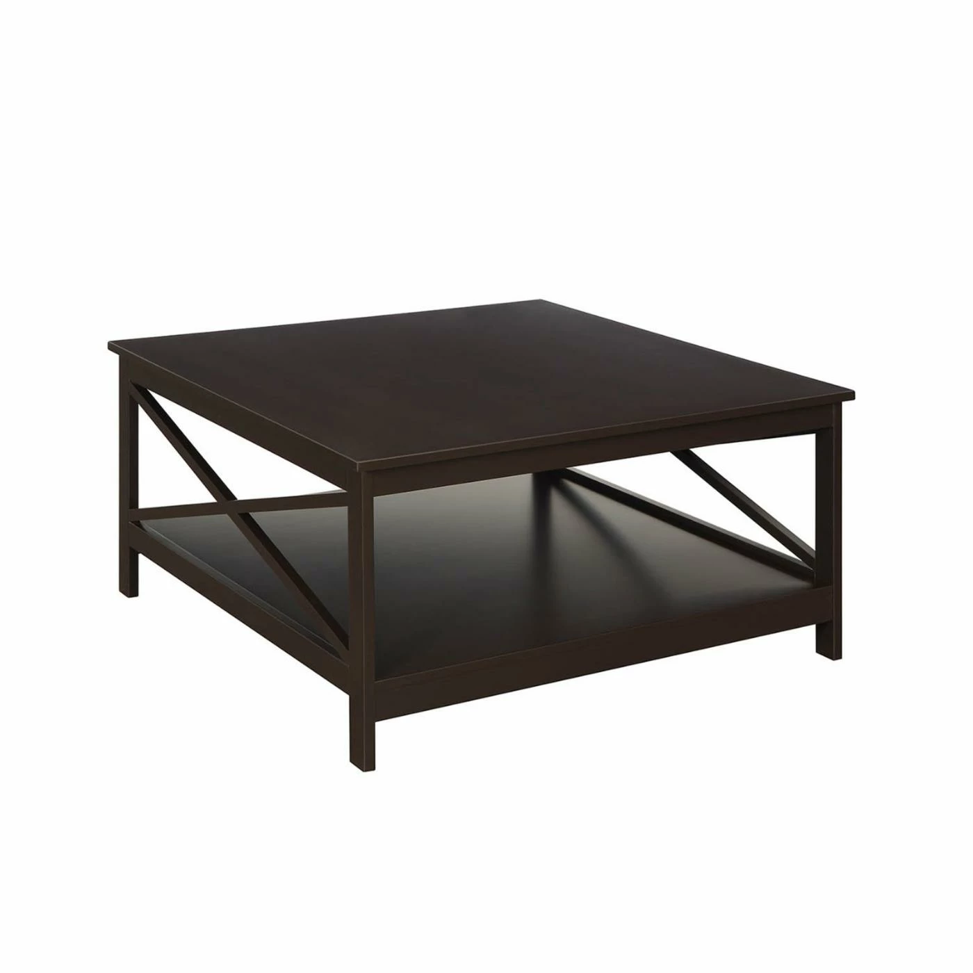 With clean, crisp lines and a modern shape, the Convenience Concepts Oxford Square Coffee Table brings your home a contemporary boost. This durable coffee table has a large square shape with an open bottom shelf for extra storage. The smooth finish is offered in your preferred available color, and an X-shaped accent on each side adds visual interest.