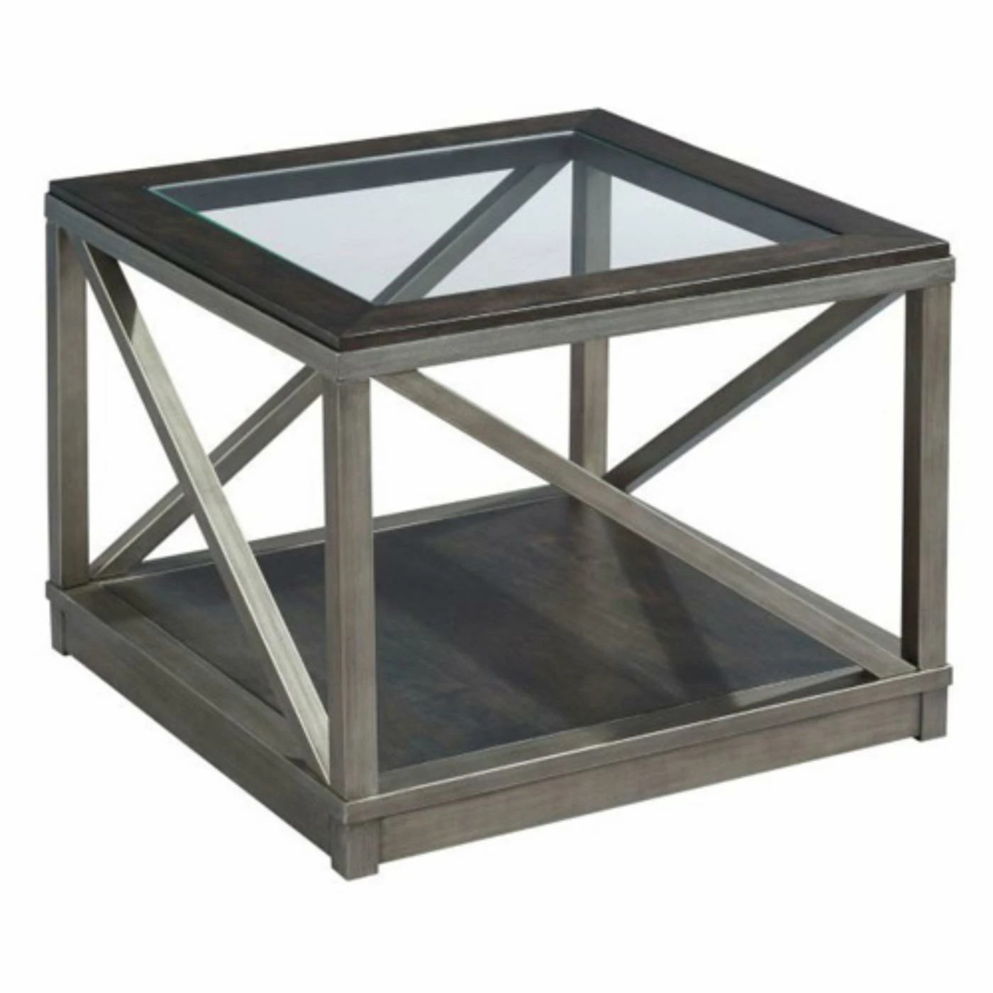 Update your living room by featuring the Hammary Jupiter Bunching Cubic Cocktail Table as the focal point of your living room. Clean style lines and geometric elements make this cocktail table a chic addition to your dΓ©cor. This table starts with a geometric metal base. A wooden lower shelf provides a fun place to display your favorite accessories. The top of this table is given a clear glass inlay that keeps the whole look light and airy. The brown and gray finish featured on this table coordinates with a wide range of home and office styles.