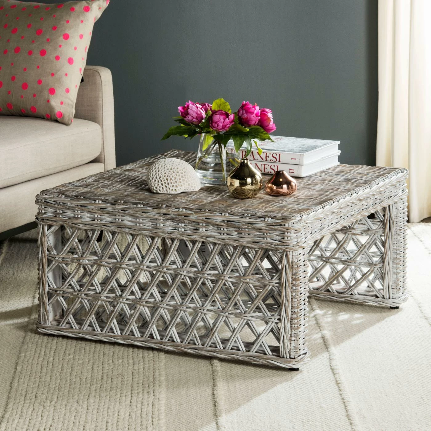 Sail away to coastal style with the HN Home Linneman Coastal Wicker Coffee Table. The table shows off a hand-woven Kubu rattan frame in a white-washed finish that brings to mind the colors of driftwood. A solid mahogany core ensures that the table is as sturdy as it is beachy chic.
