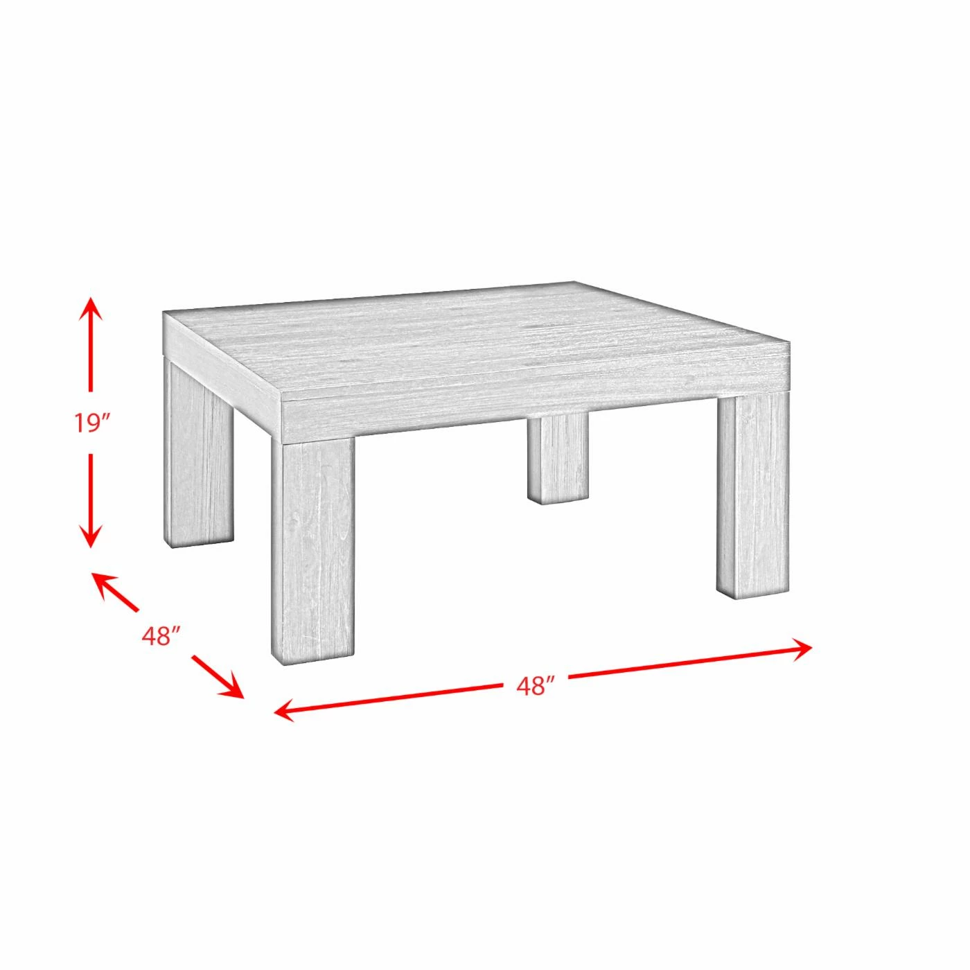- Dimensions: 48W x 48D x 19H in.