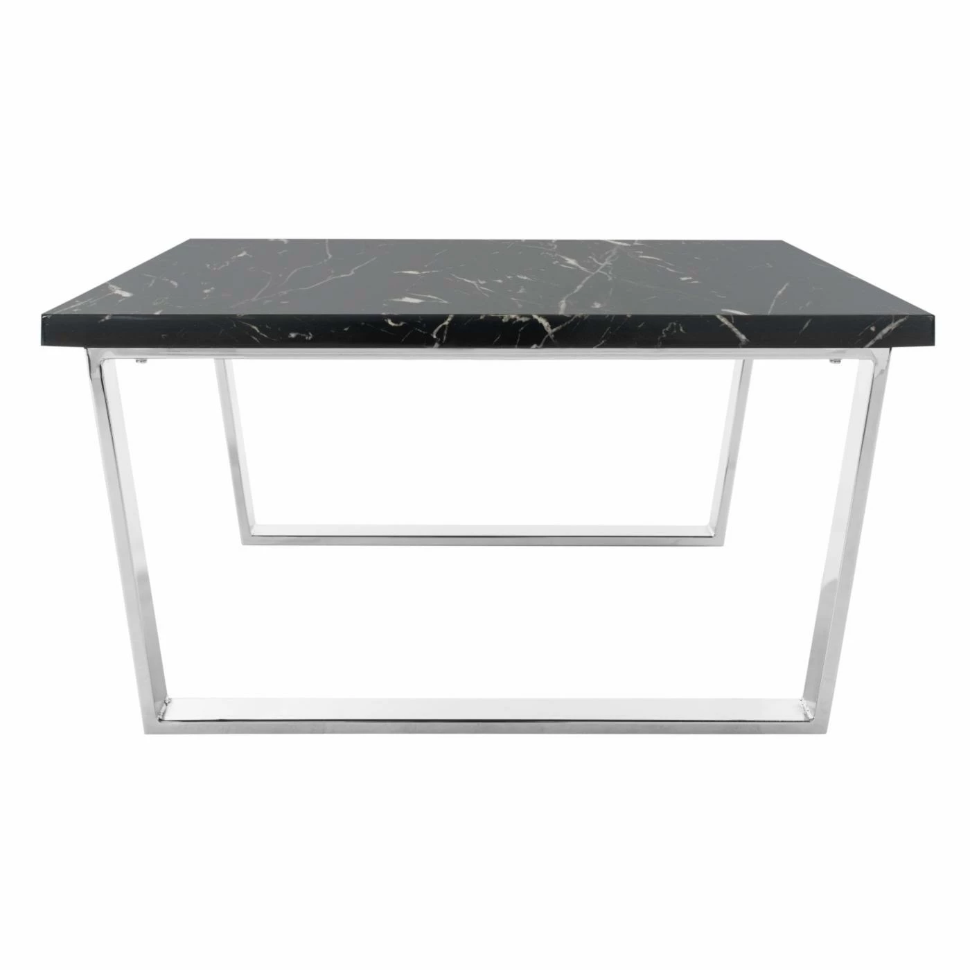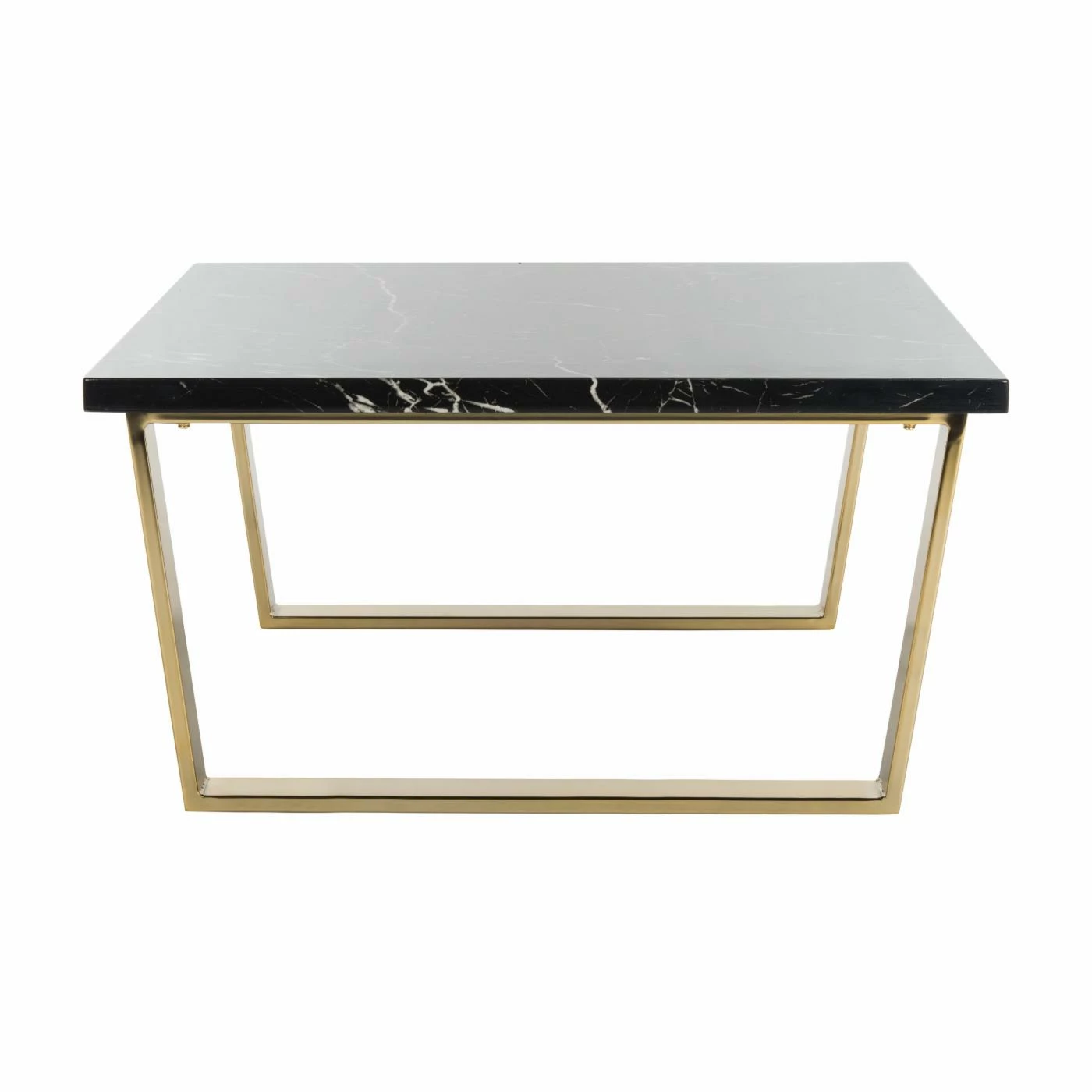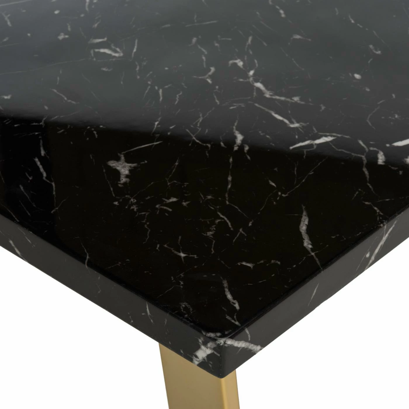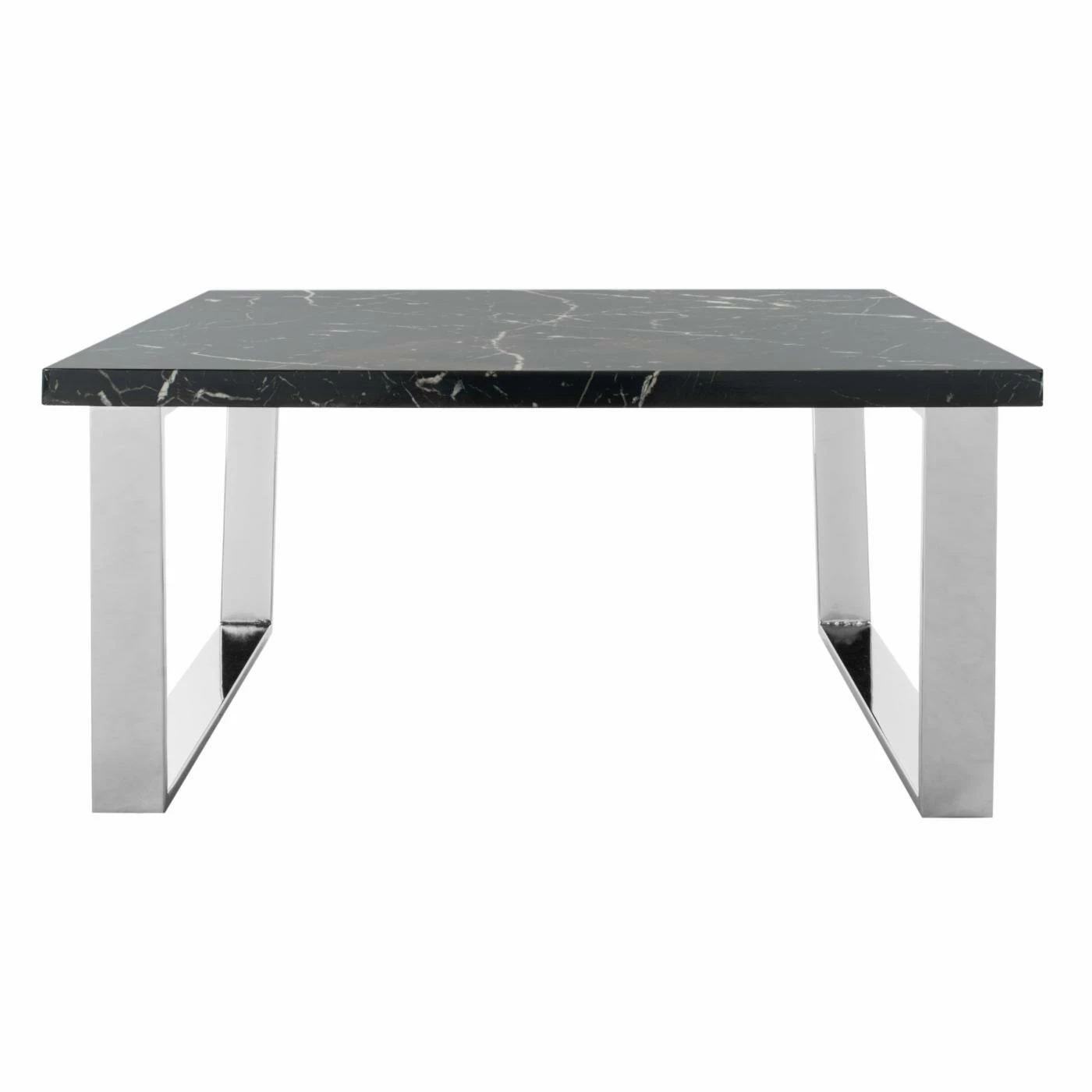 The Safavieh Carmen Square Coffee Table flaunts a clean-cut faux black marble top. It’s supported by sleek rectangular legs with a lustrous metallic finish. The clean lines, sharp angles, and mixed material look give this table a distinctly modern essence. It’s an excellent choice for complementing glam decor