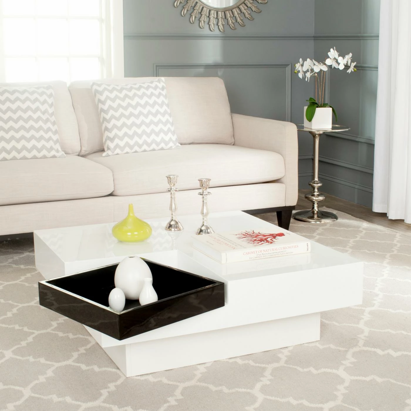 A cluttered coffee table will become a thing of the past when you have the Safavieh Wesley Coffee Table in your living room. You can place all of those small odds and ends in the table’s black tray, which is removable for easy filling and emptying. The rest of the tabletop and the recessed base of the sturdy engineered wood piece bear a high-contrast white-lacquered finish for a mod two-tone effect.