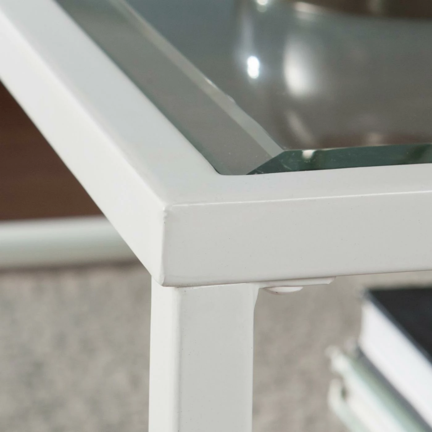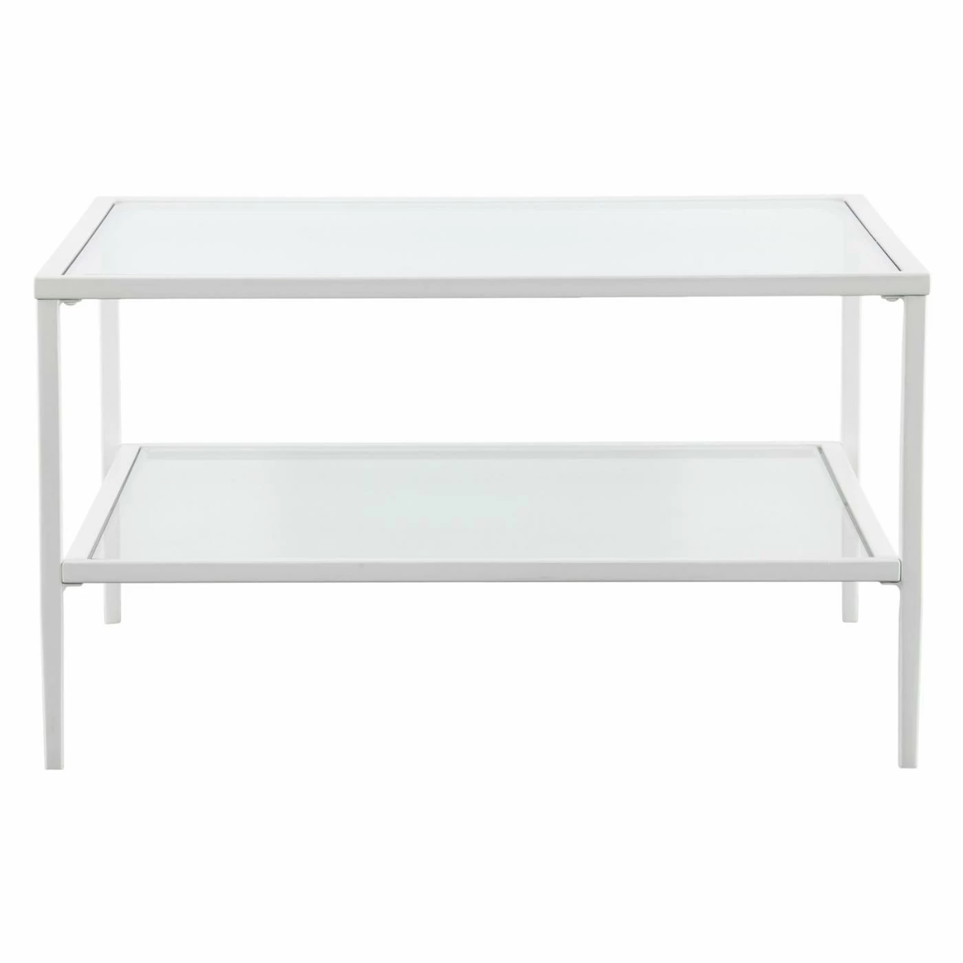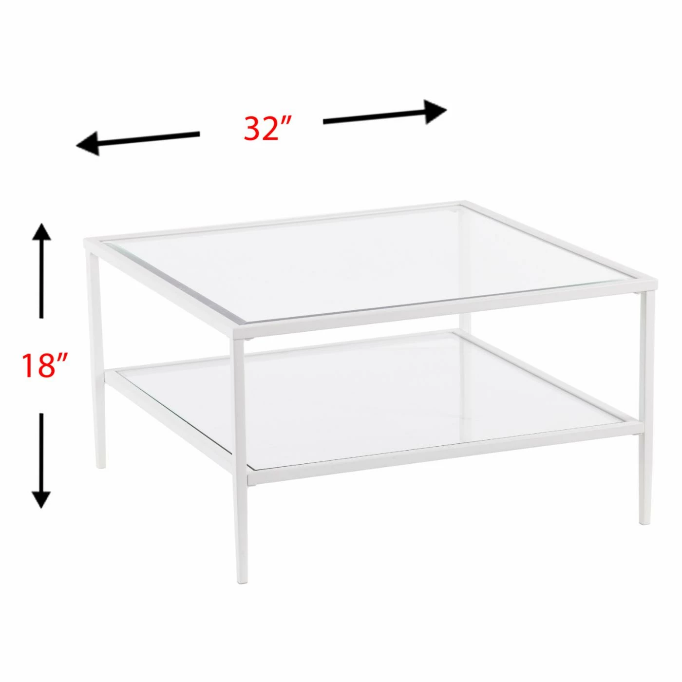 Double down on your living room display space with the Southern Enterprises Keller Square Metal / Glass Open Shelf Cocktail Table. The rectangular cocktail table is composed of an iron base that’s power coated in your choice of available finish. The two clear tempered glass shelves will keep your memorabilia out in the open and organized, all at the same time.
