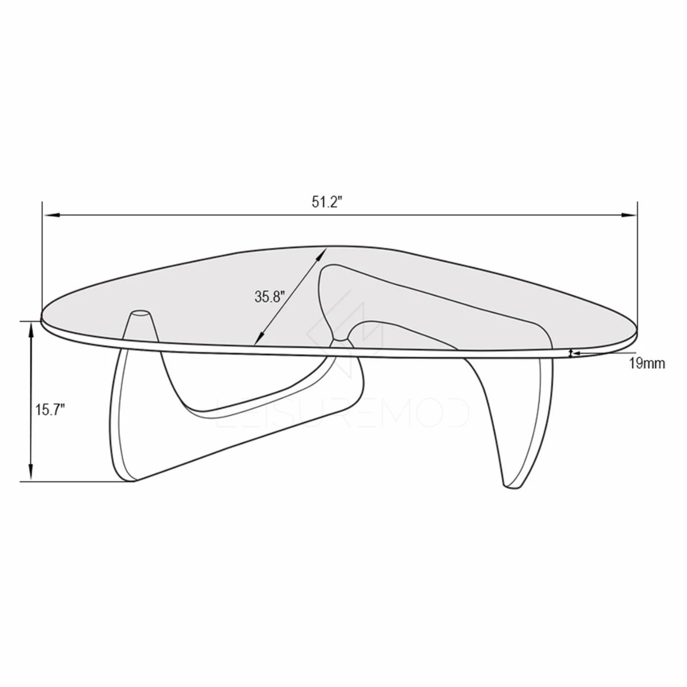 The glass top on the LeisureMod Imperial Triangle Coffee Table will inject structural appeal into your space with its modern look. The base is designed with two pieces of interlocking wood with a hand-applied stain that emphasizes the natural wood grain. It’s topped with five layers of polyurethane, creating a scratch-resistant surface that never requires waxing. The glass top is thickly cut and boasts a rounded, triangular shape that enhances this table’s artsy look.